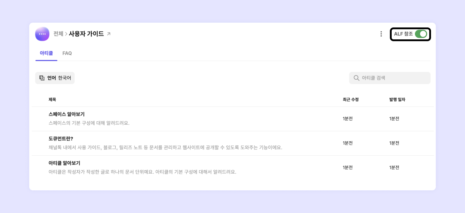 ALF 답변 하단의 출처에서 참조된 지식이 무엇인지 확인할 수 있어요. 출처 내 잘못 참조된 문서를 클릭하여 ALF가 혼동할 수 있는 표현이나 문장이 있다면 수정해 주세요.