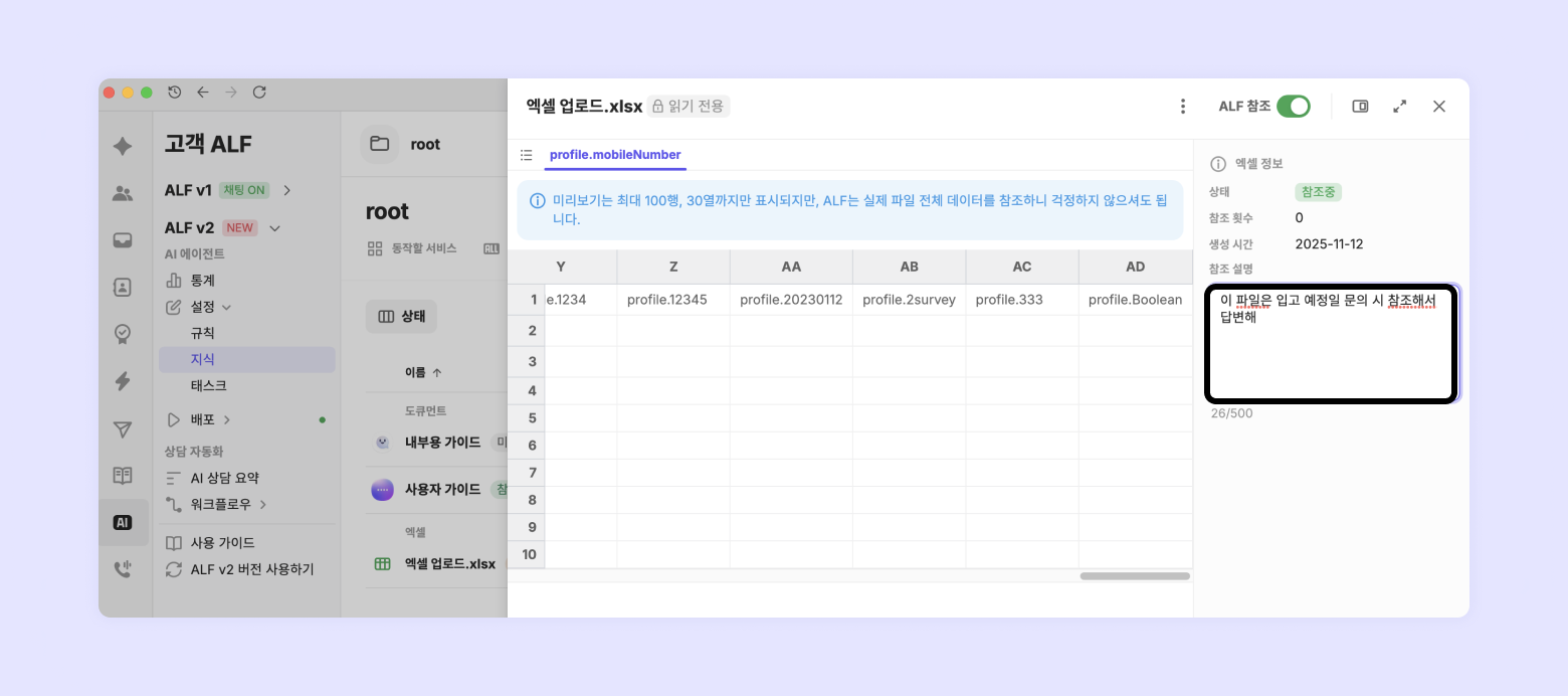 해당 엑셀 파일을 클릭한 후 해당 엑셀 파일이 참조될 수 있는 상황을 참조 설명에 입력해 주세요. 엑셀은 참조 설명을 입력한 상태에서만 ALF가 참조 가능합니다. (*엑셀 참조 가이드)