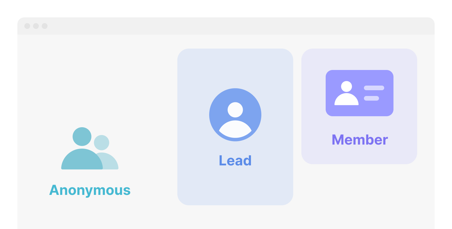• 익명의 유저 또는 리드가 로그인 또는 회원가입 하면 멤버가 됩니다.