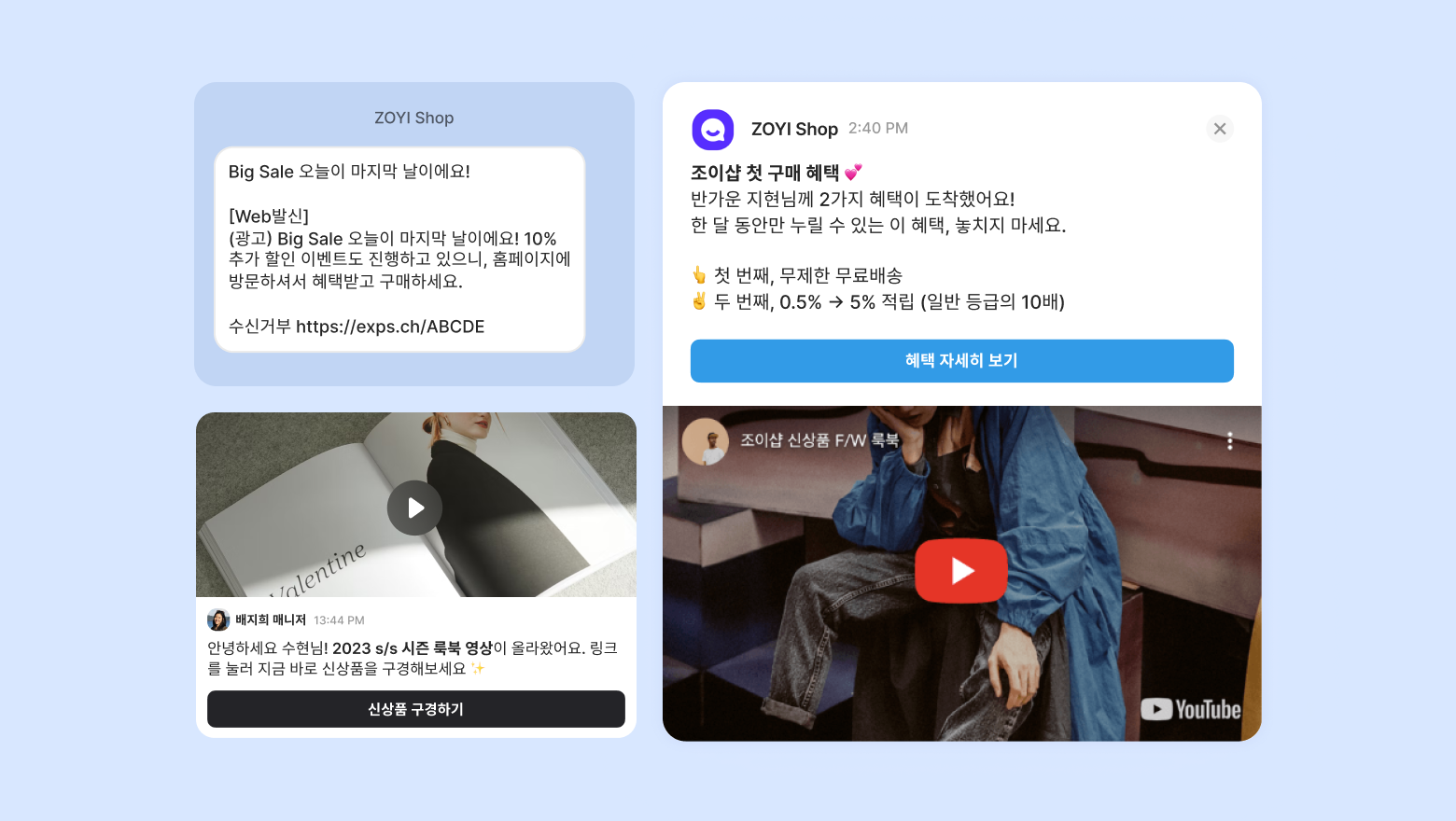 • 접점 기준 : 채팅, 사이트 방문, 마케팅 메시지 수신, 고객 연락처 정보 업데이트 등