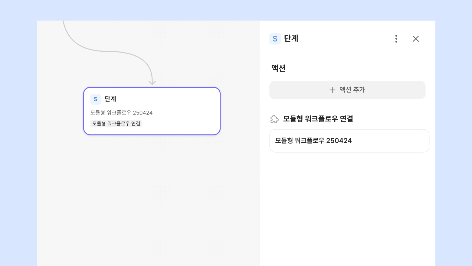 모듈형 워크플로우 사용 방법은 워크플로우 액션 가이드를 참고해 주세요. (→ 모듈형 워크플로우 연결 가이드 보러 가기)