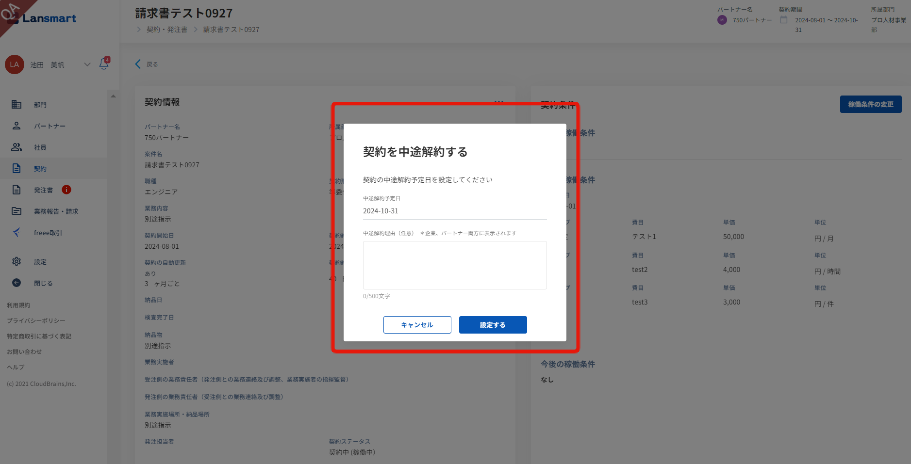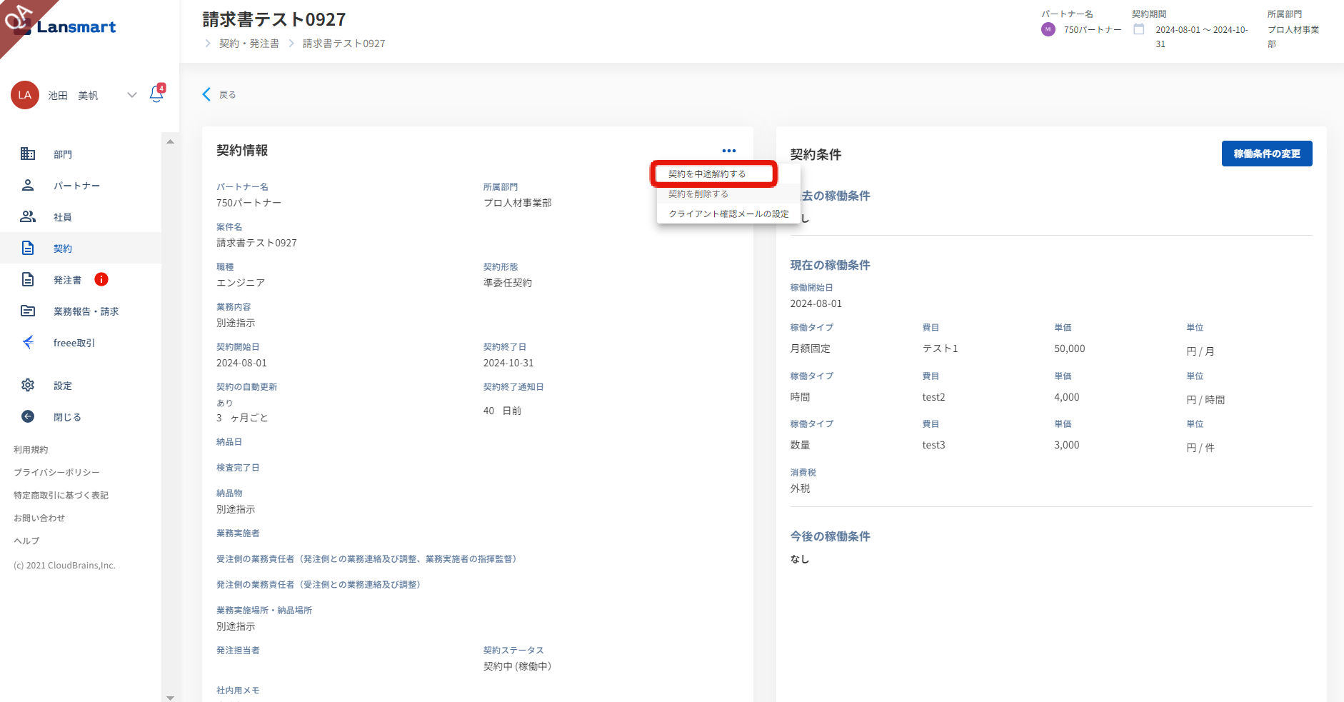 中途解約の方法は、こちらのヘルプページをご参照ください。 ※既存の契約を中途解約されませんと、役務提供終了日まで毎月業務報告が自動生成されてしまいます。