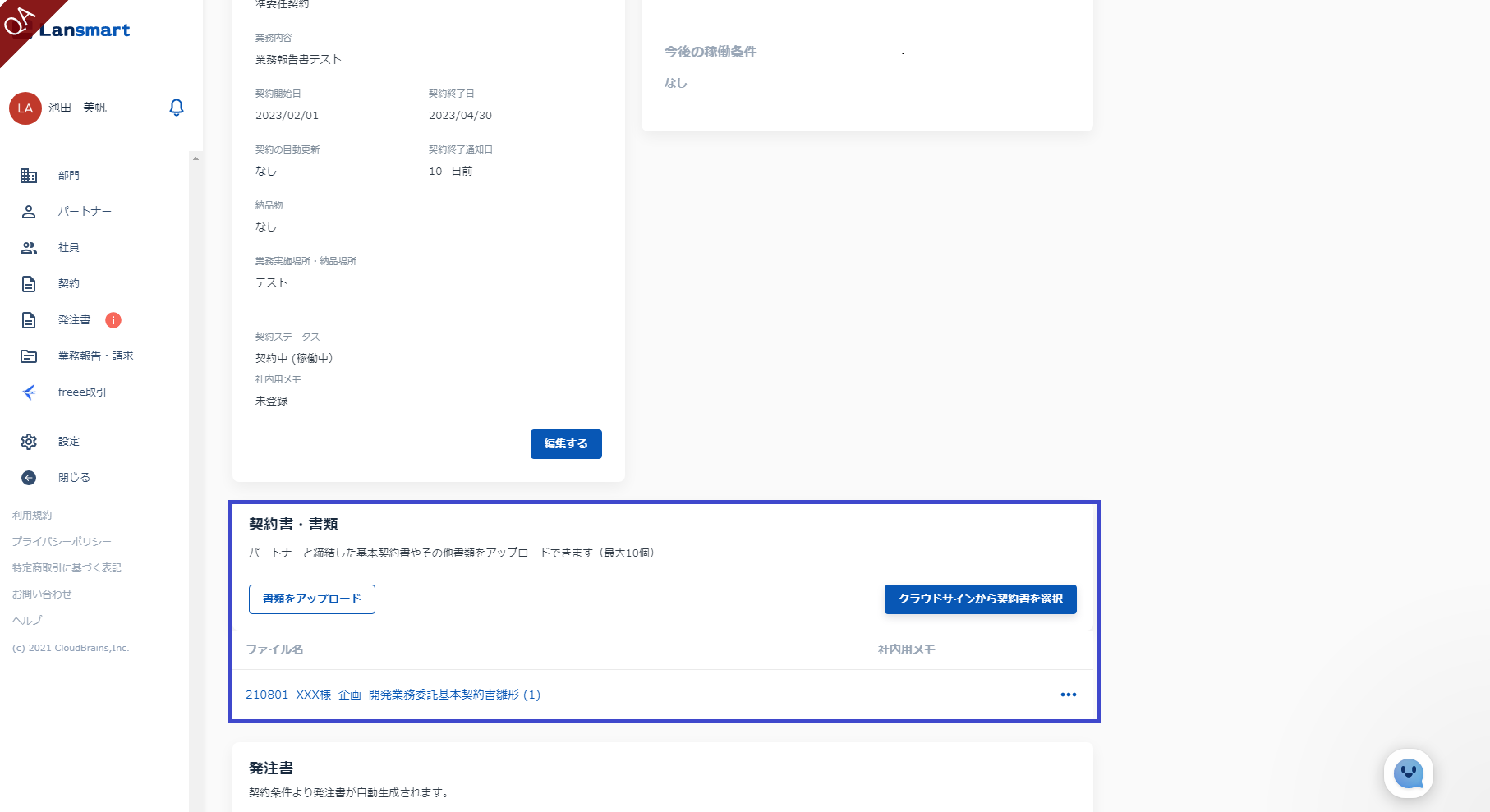 登録が完了すると、以下の形で契約書がアップロードされます。