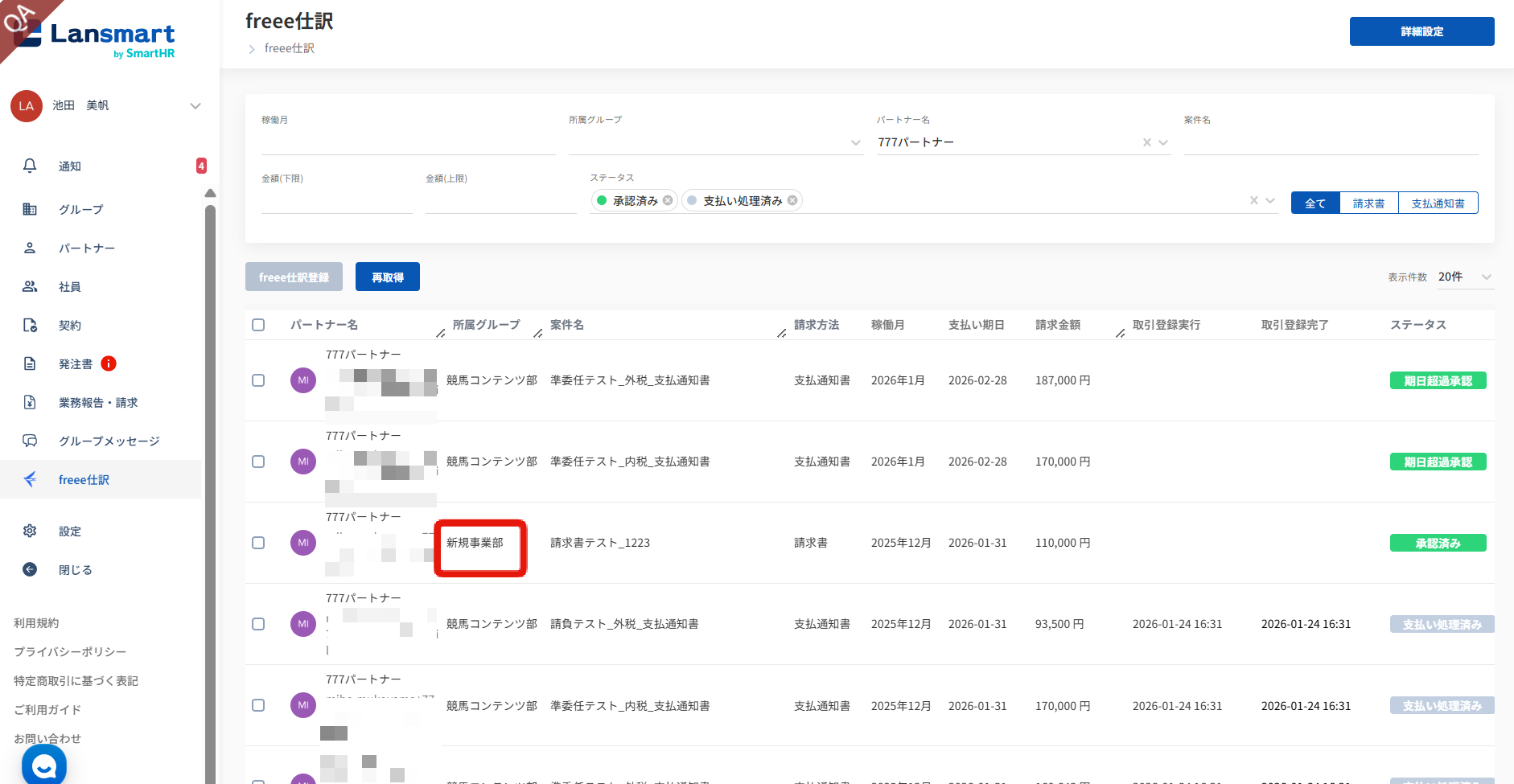 異動後のグループが、そのパートナー未所属のグループだった場合は、パートナー一覧の所属グループに異動後のグループが追加されます。