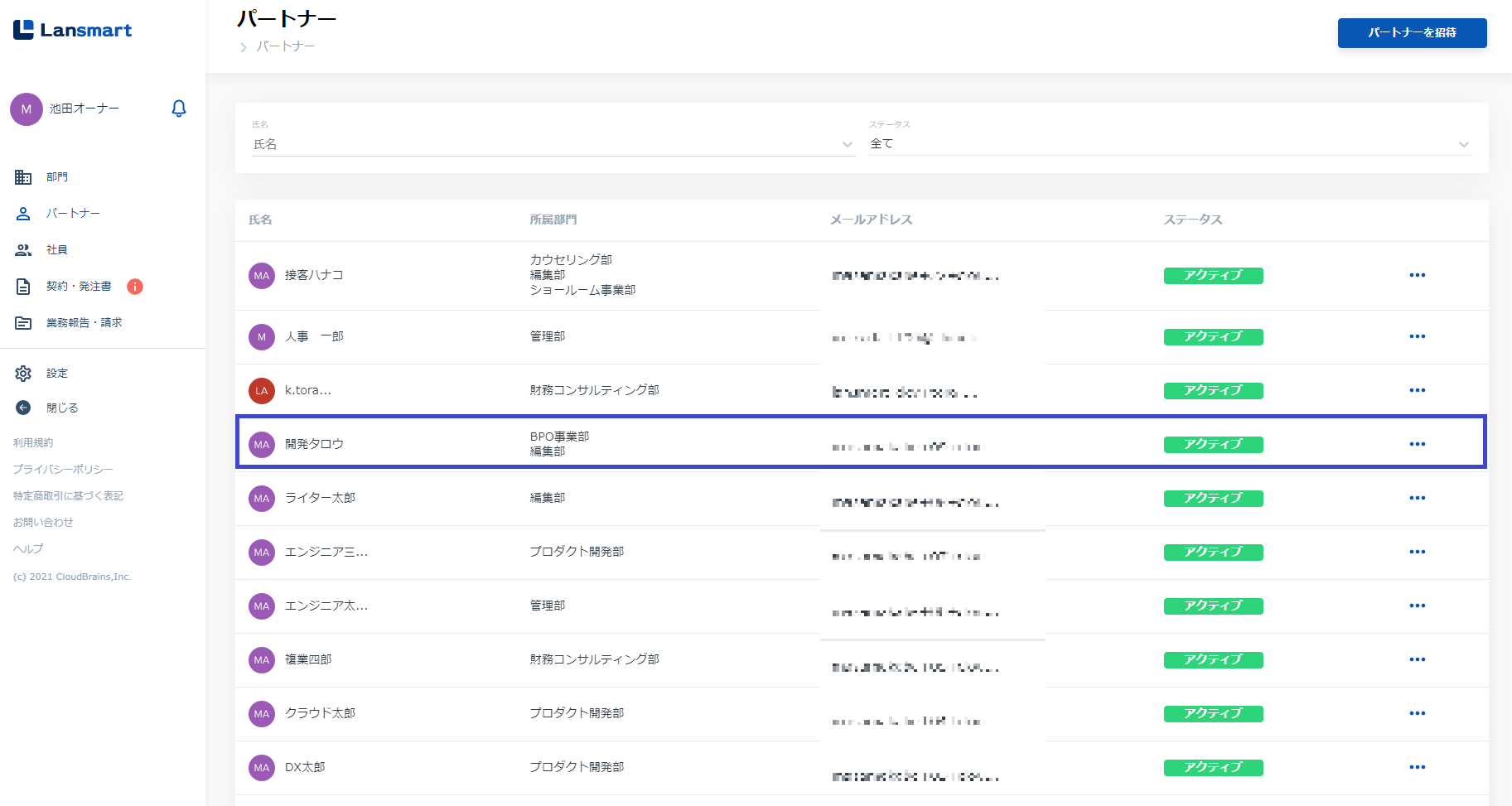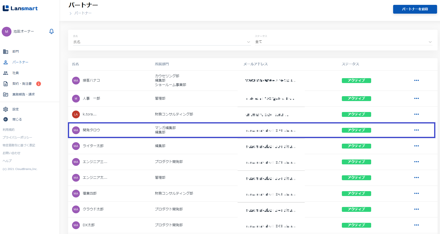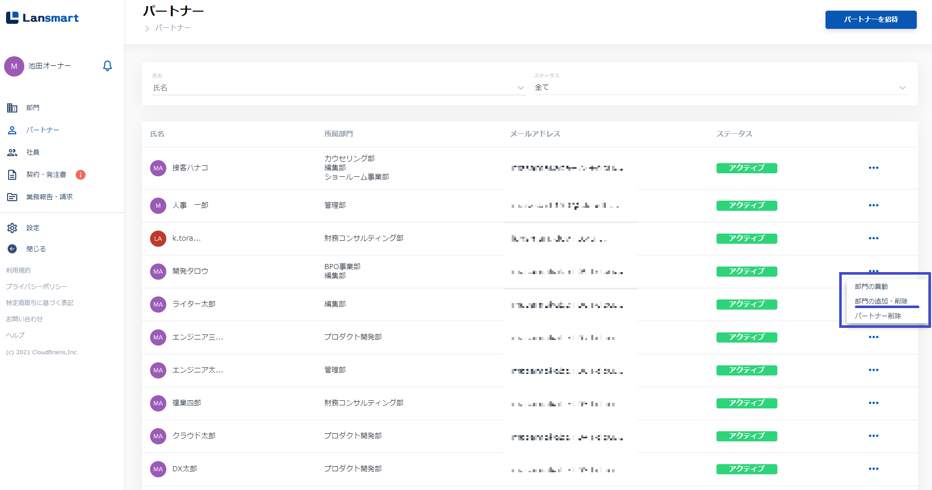 左メニューの「パートナー」をクリックし、グループの追加・削除をしたいパートナー名の右にある三点リーダーをクリックします。