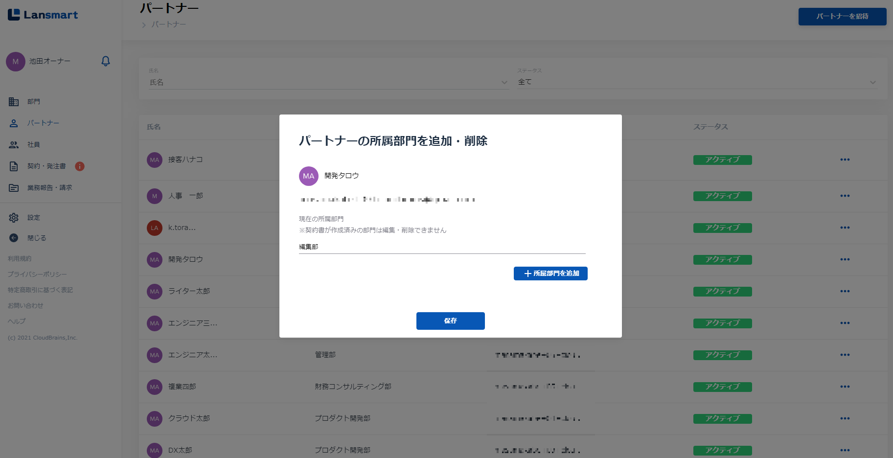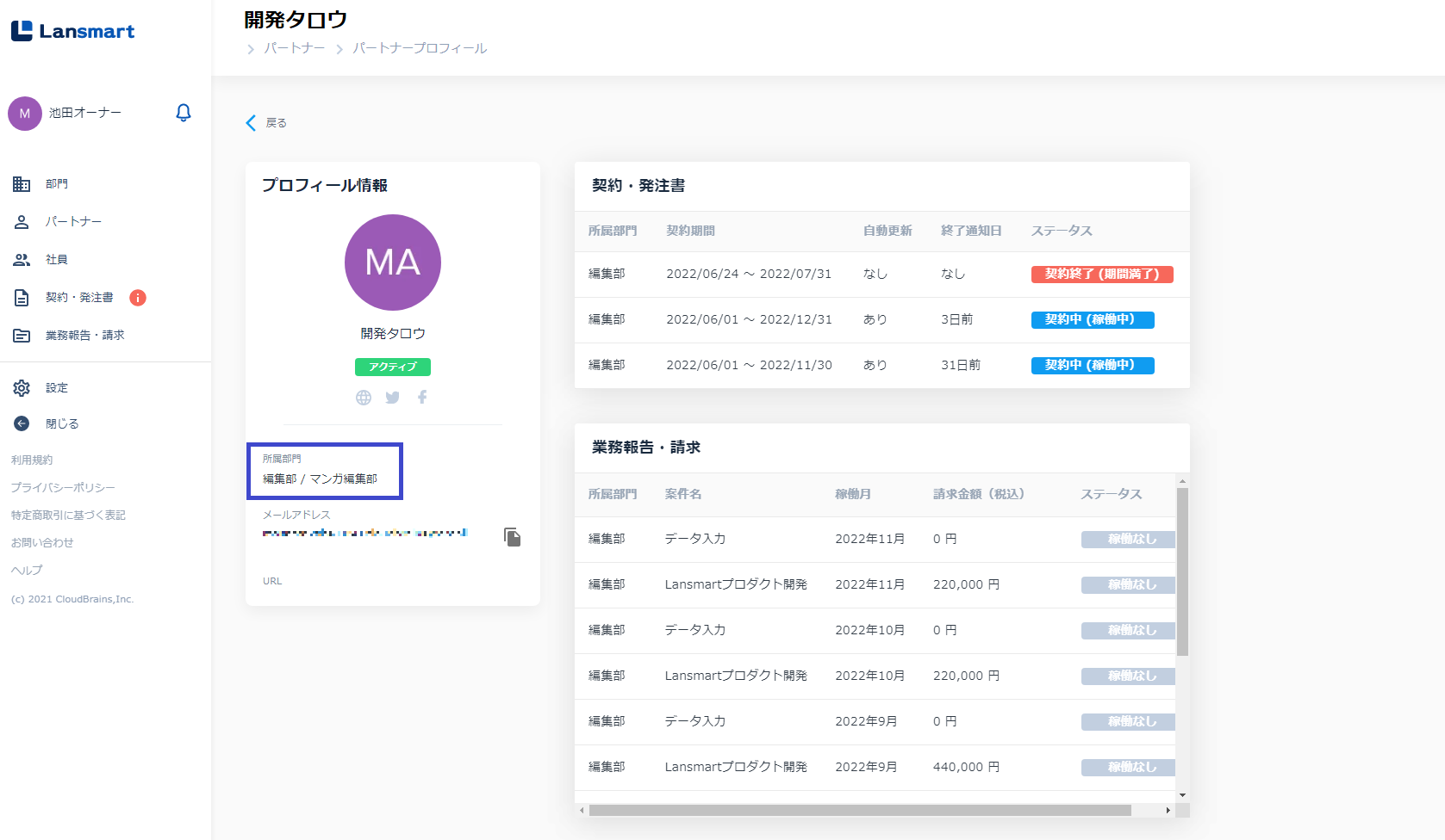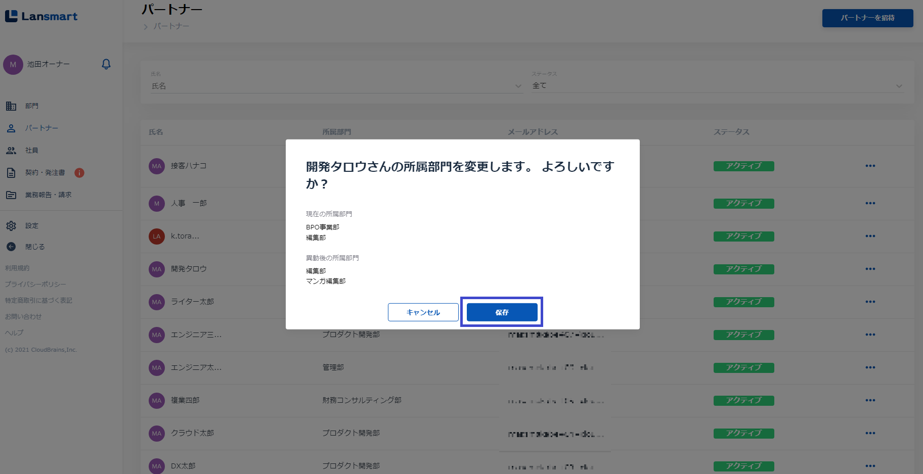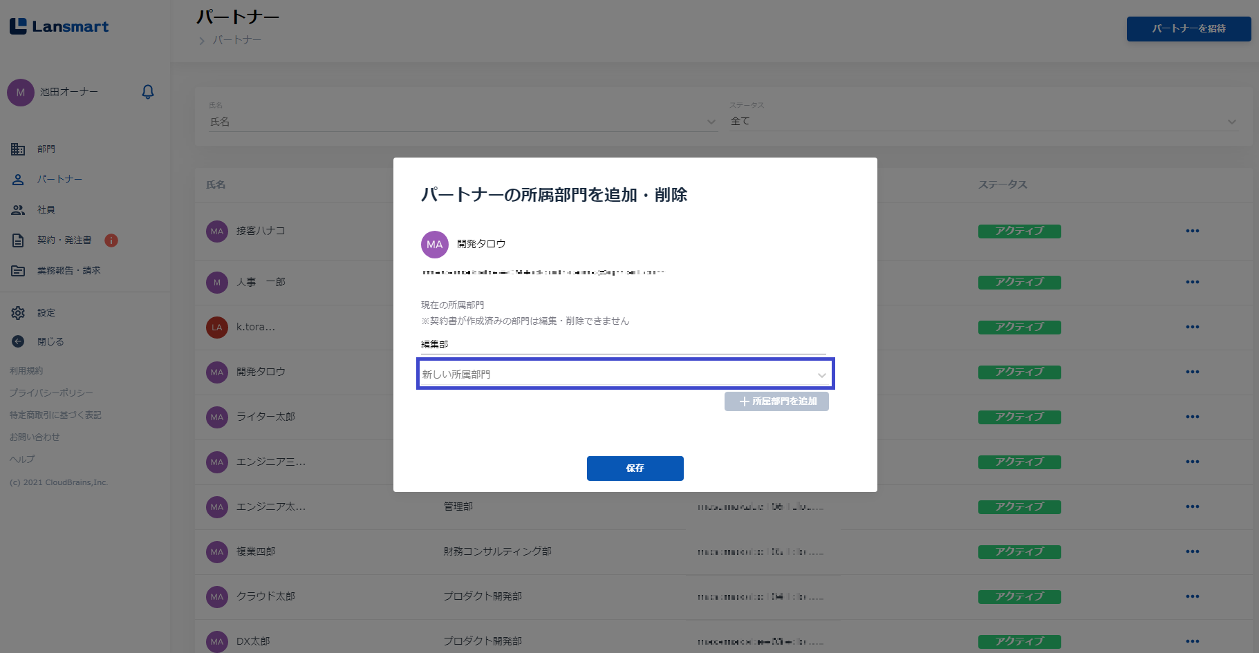 パートナーの所属グループを追加・削除する(動画) (BPO事業部を削除し、マンガ編集部を追加する)