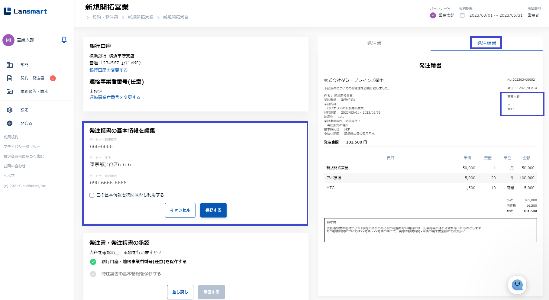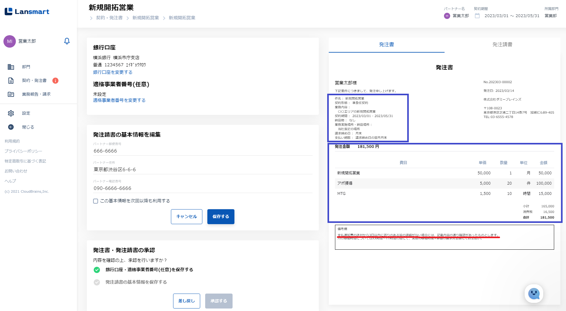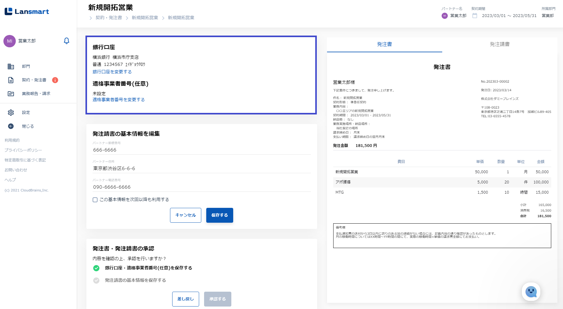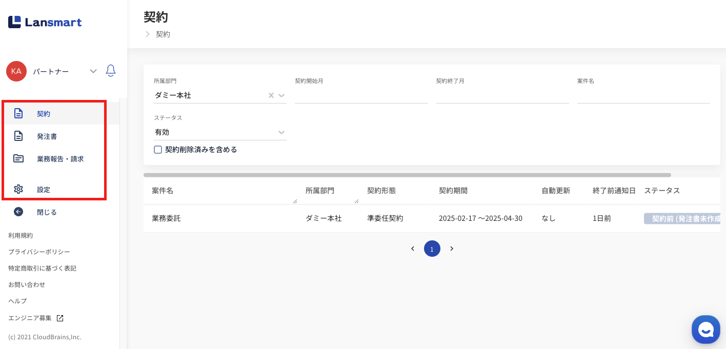 このページではパートナー様がLansmart by SmartHRを使って、契約企業との発注書の承認・業務報告の入力・請求書の提出を行うまでの一連の流れをご説明します。