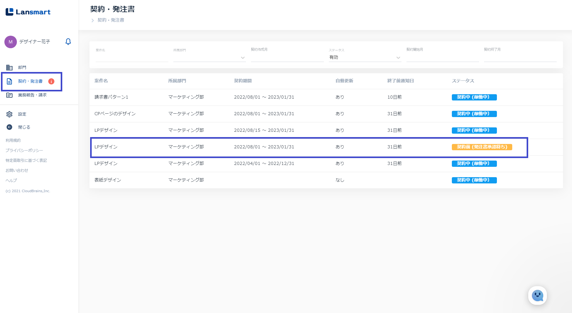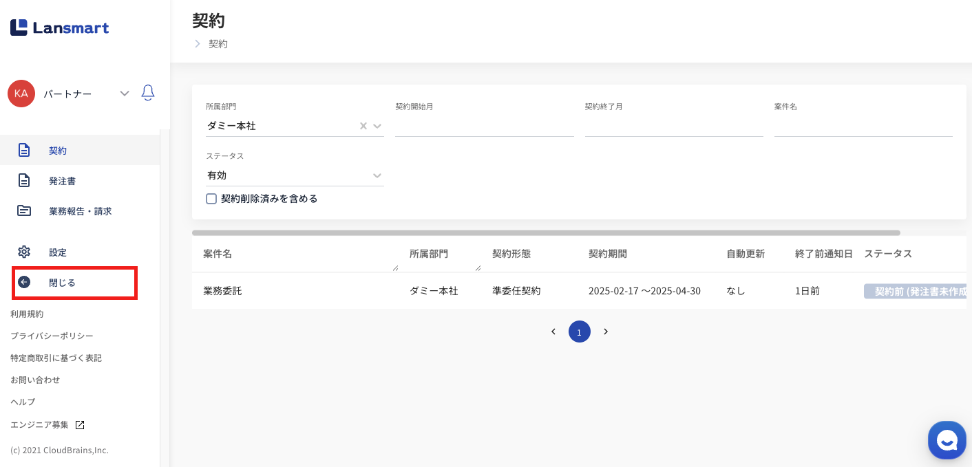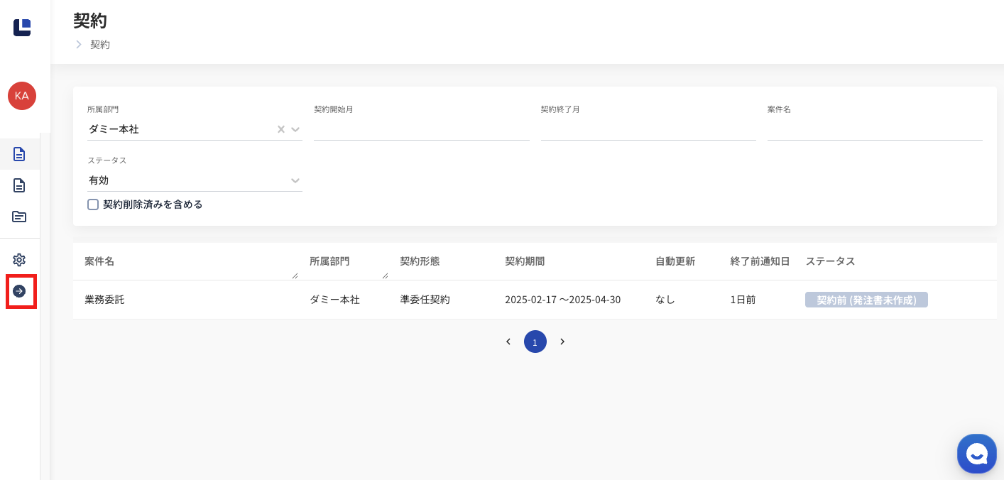 ※契約・発注書一覧に表示されるステータスの詳細は、こちらをご覧ください。