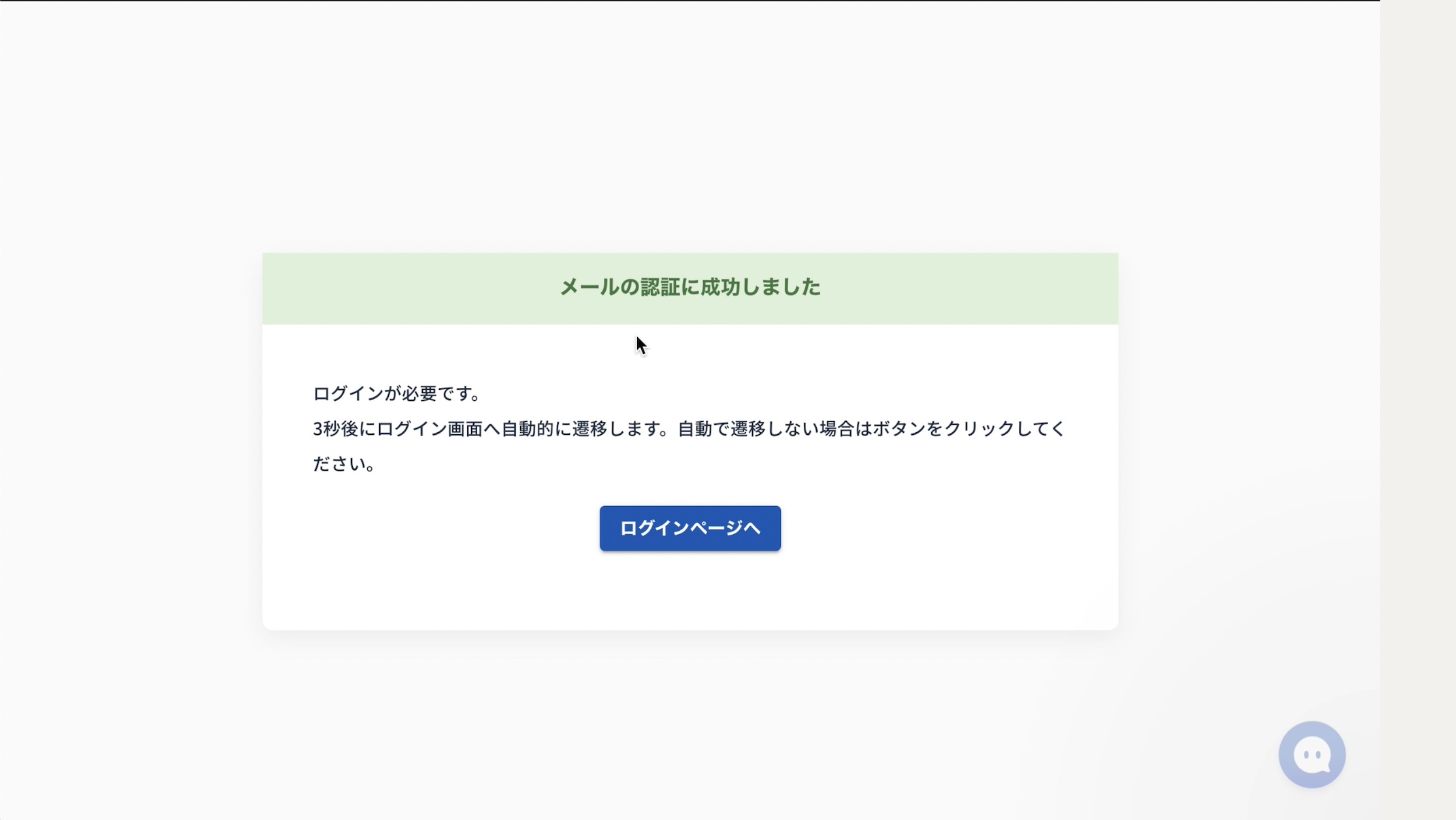 メール認証が成功すると下記の画面が表示され、そのままログインページに遷移します。