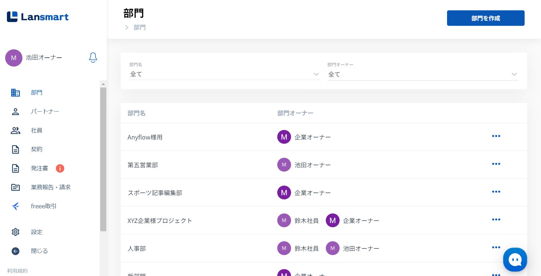 Lansmart by SmartHRでは、まず企業側でグループを作成し、そこに社員とパートナーを招待し、グループに紐づいた形で契約や発注や業務報告・請求の管理を行います。
