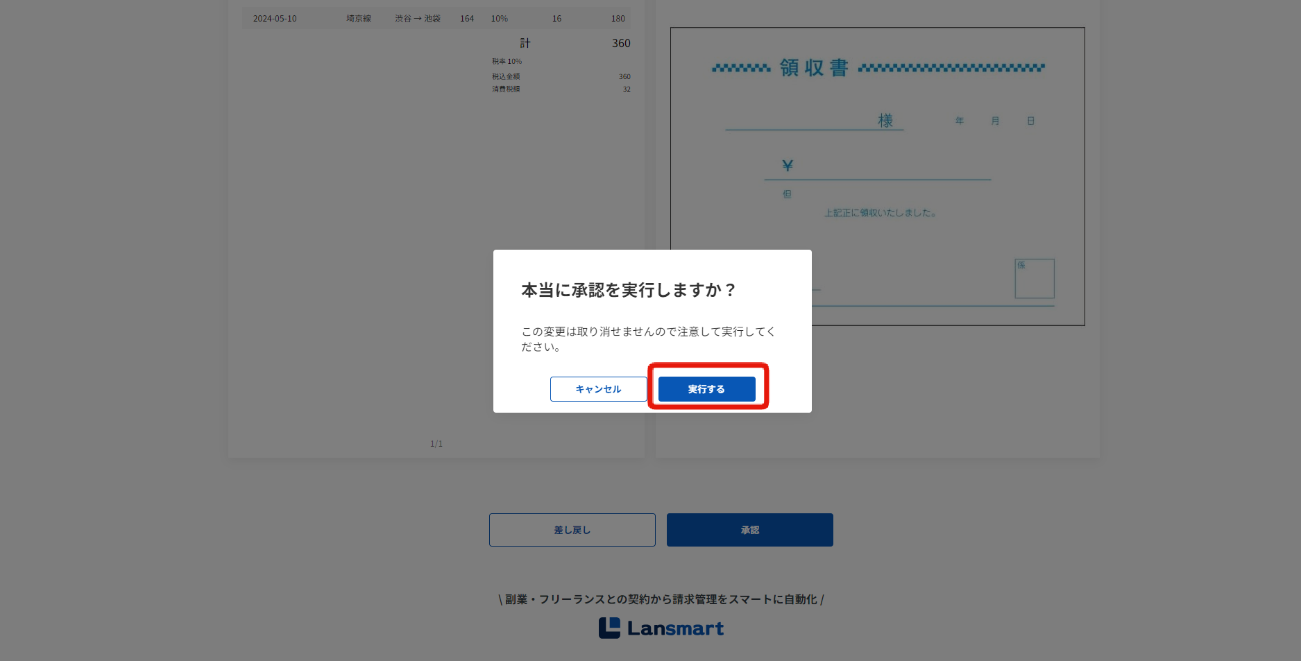 内容に問題なければ、「承認」ボタンを押します。