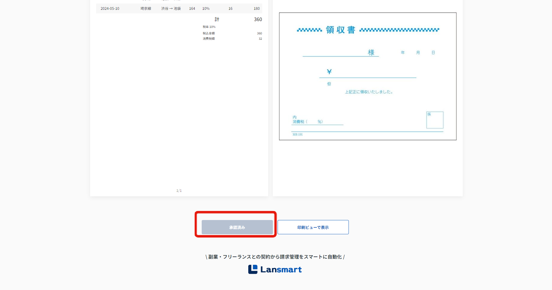 クライアント確認ステータスが「承認済み」でも、請求書は自動で「承認済み」にはなりませんので、ご注意ください。企業様側で請求書を承認いただく必要がございます。