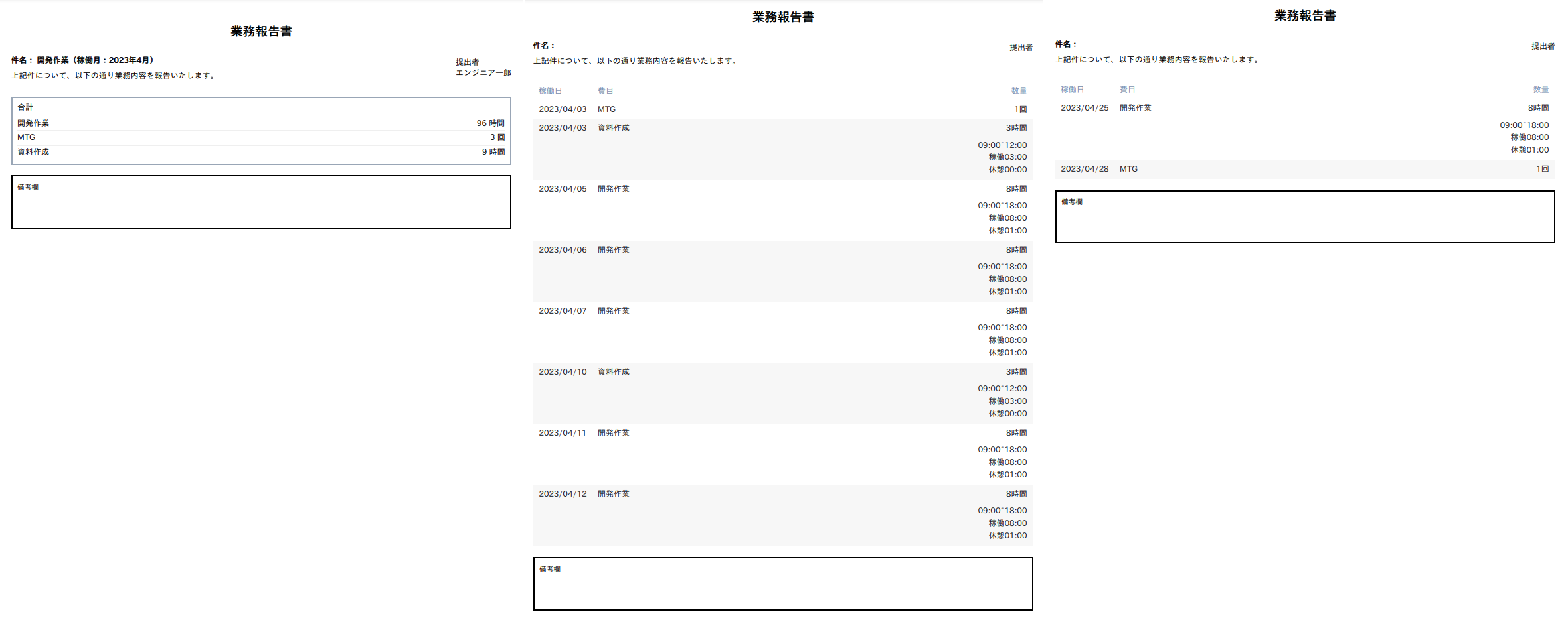 「承認済み」「支払処理済み」ステータスの請求書の業務報告書