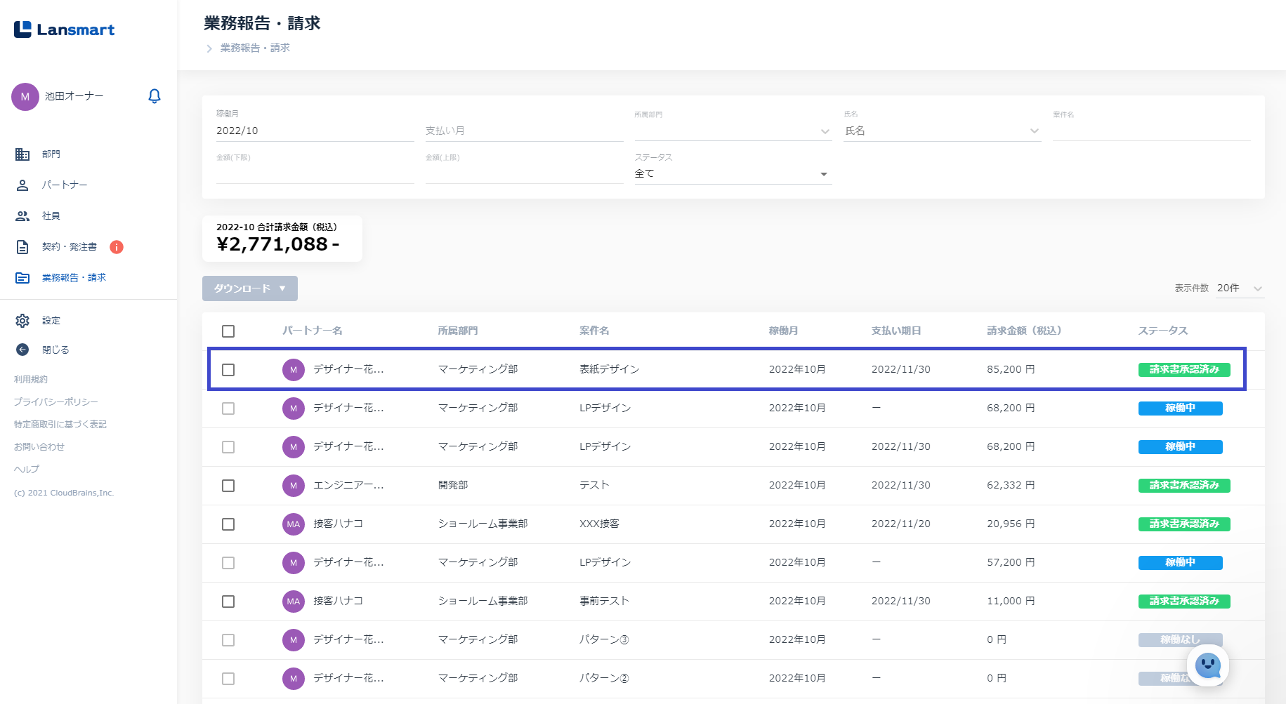 承認済の請求書をPDFでダウンロードしたい場合は、請求書一括ダウンロードをご参照ください。