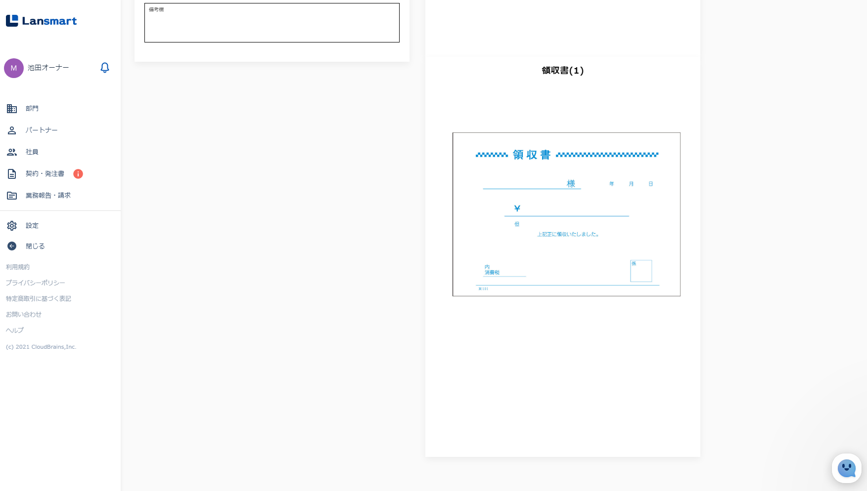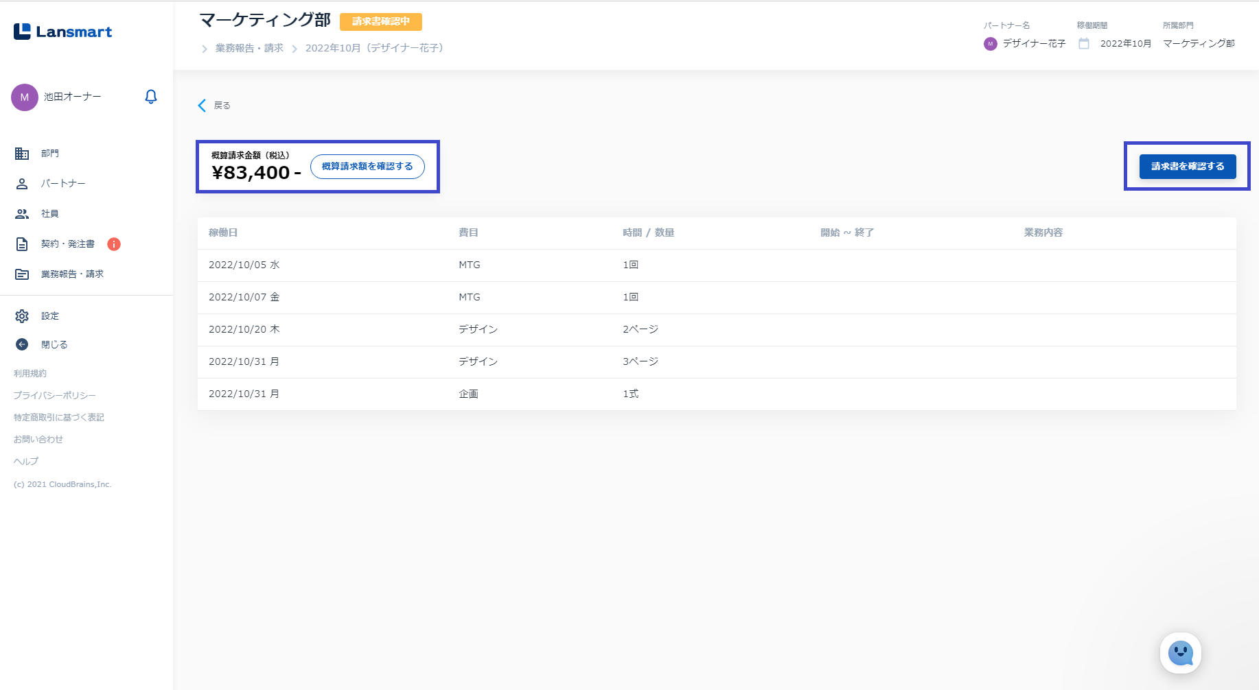 パートナーから業務報告・請求書が提出されると、件名「【Lansmart】請求書を確認してください」という通知が届きます。