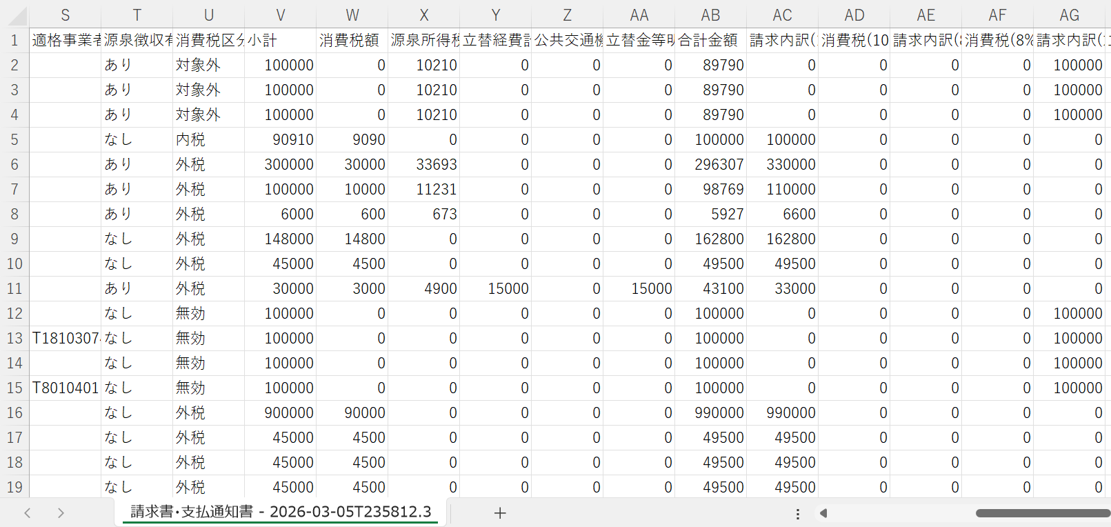 「請求書・支払通知書.csv」というファイル名でダウンロードされます。