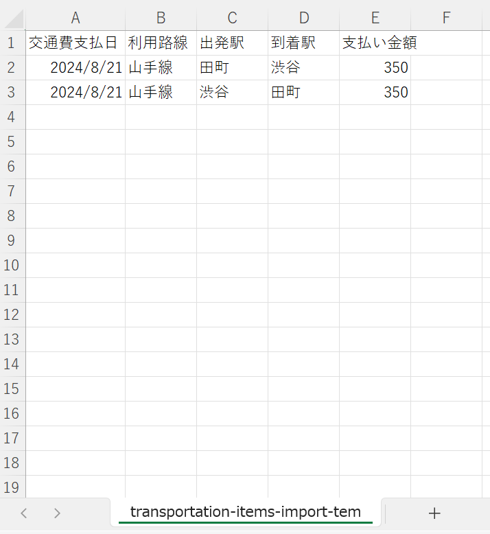 一括登録用のCSVファイル(3万円未満の公共交通機関)