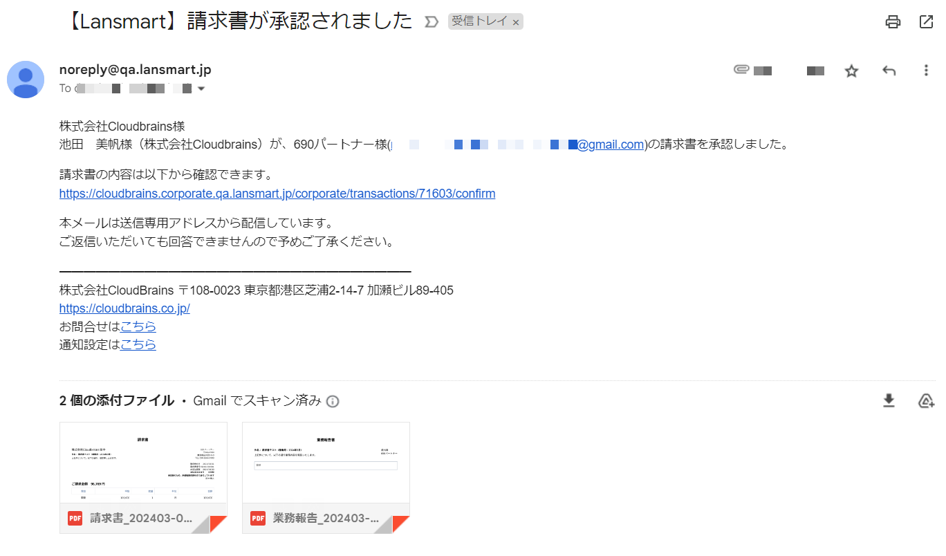※メールには、業務報告書も添付されます。