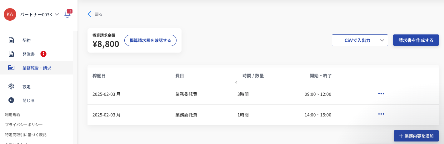 業務登録は(同じ費目でも、別の費目であっても)稼動時間帯が被らなければ、1日の中で複数回登録することが可能です。