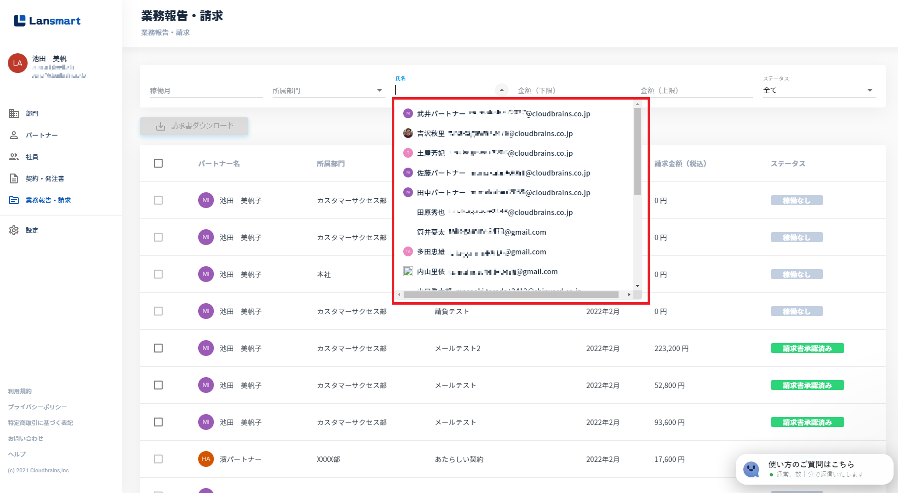 尚、請求書は、パートナーが承認した請求書のみダウンロードすることができます。