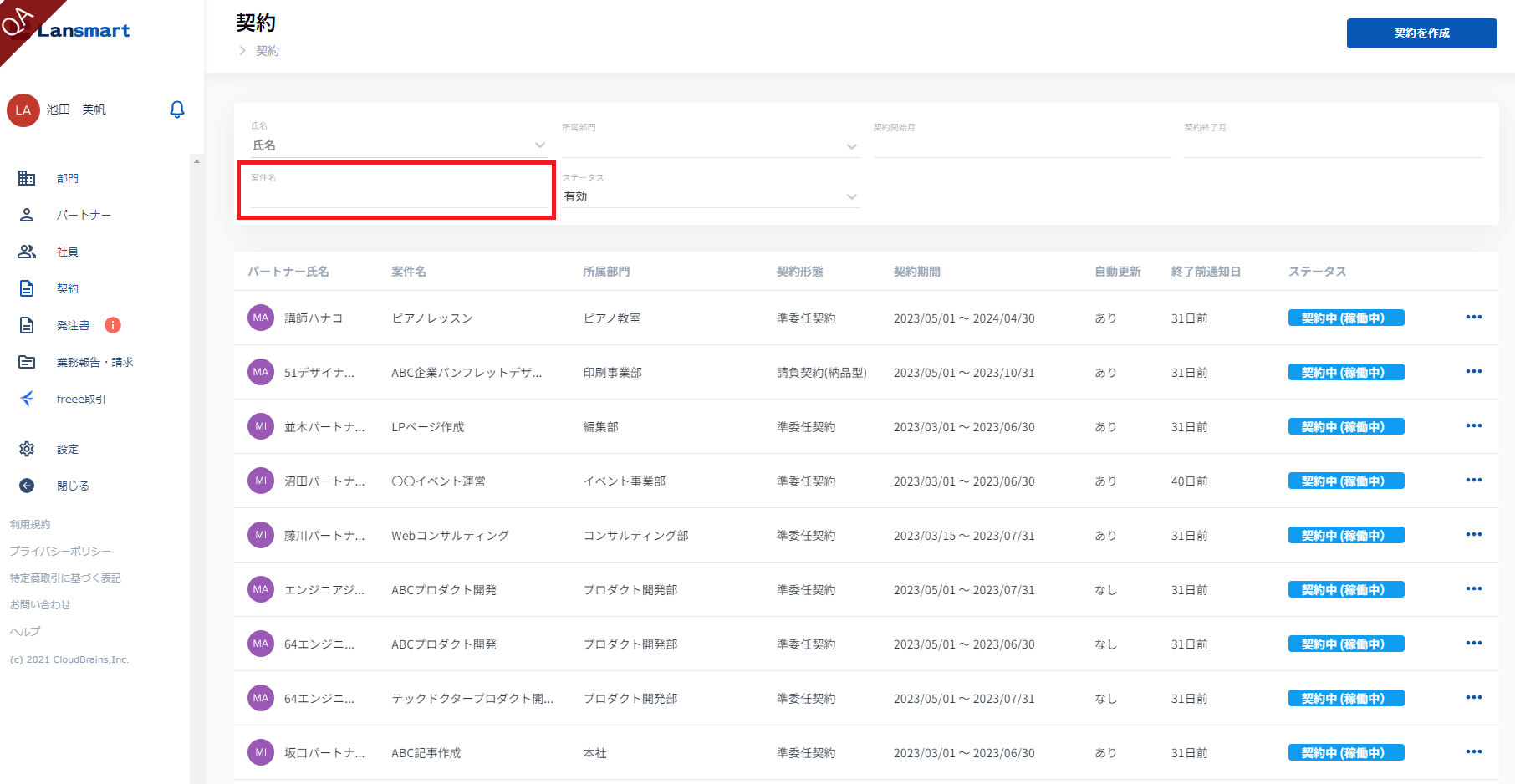 全てのページの請求書・支払通知書を選択するには、稼働月または支払月のフィルタを指定してください。