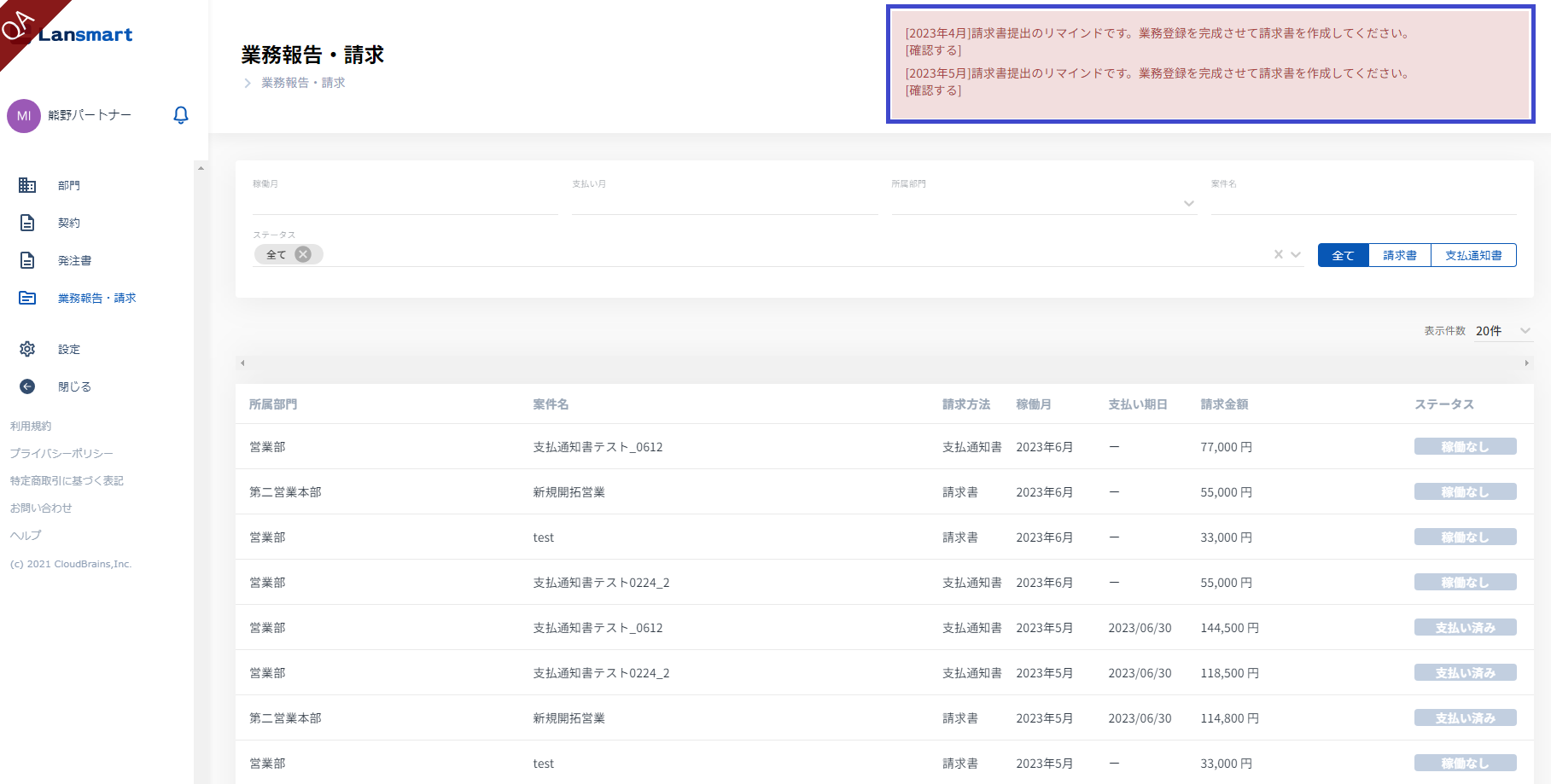 請求書、支払通知書に関する通知は、請求書のPDFが添付されるようになりました。(業務報告書は添付されません。)