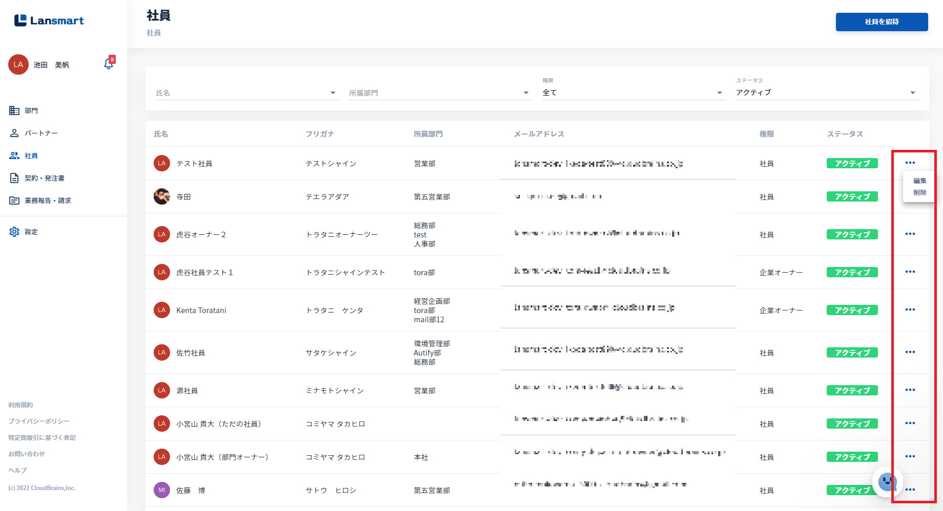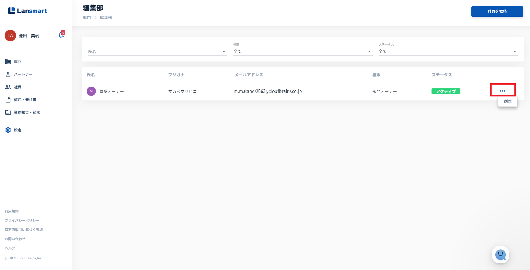 ④左メニュー「社員」のステータス右横 (※企業オーナーのみ表示されます。)