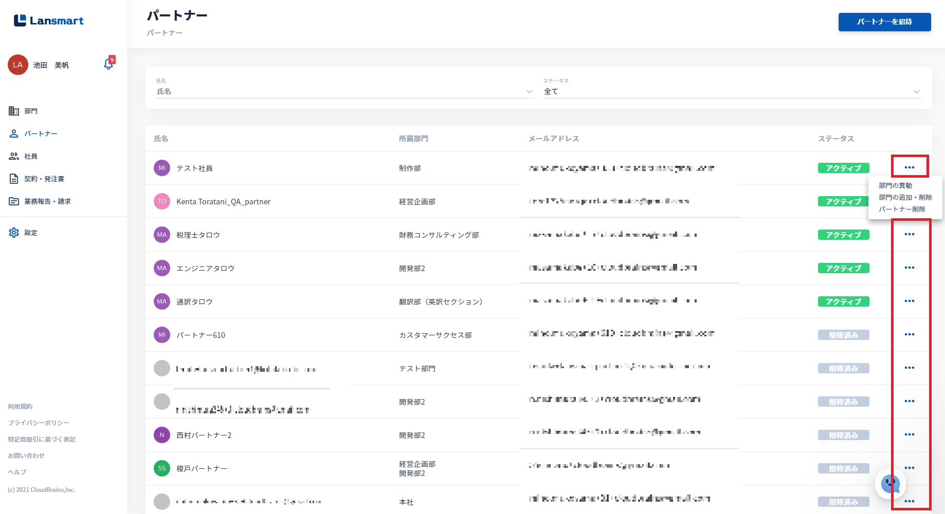 ③左メニュー「パートナー」のステータス右横 (※企業オーナーのみ表示されます。)