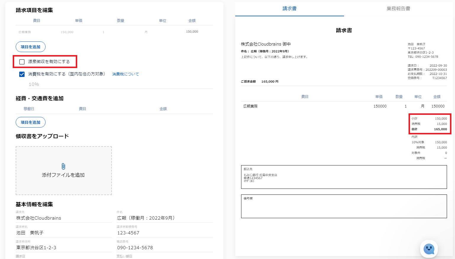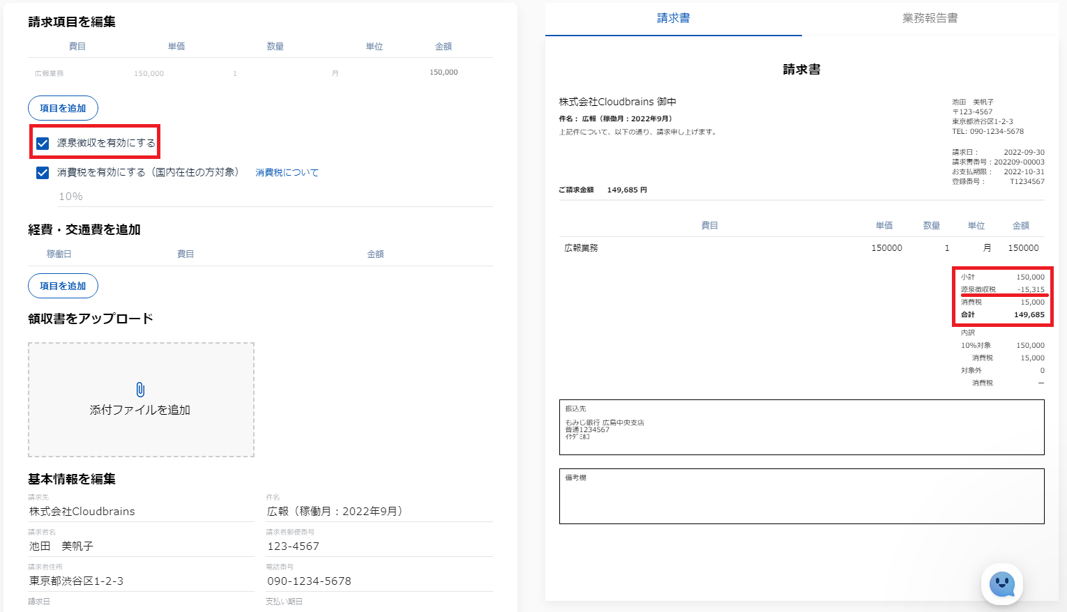 ●源泉徴収を有効にした場合