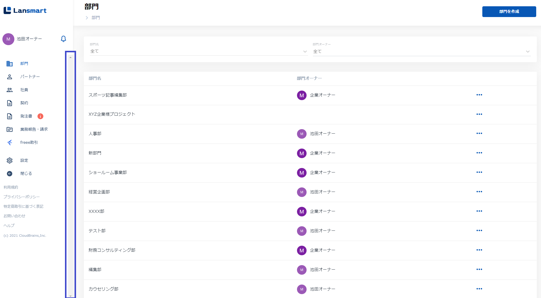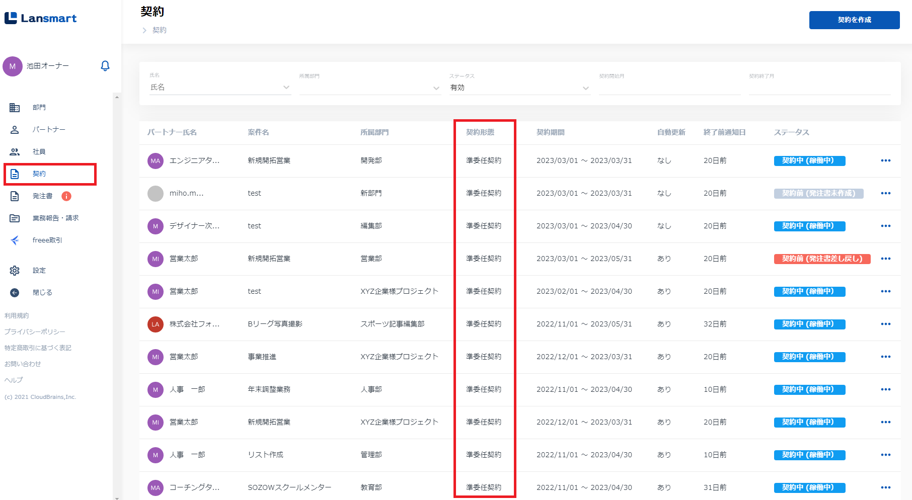 左メニュー「契約」一覧には、契約形態の表示を追加しました。