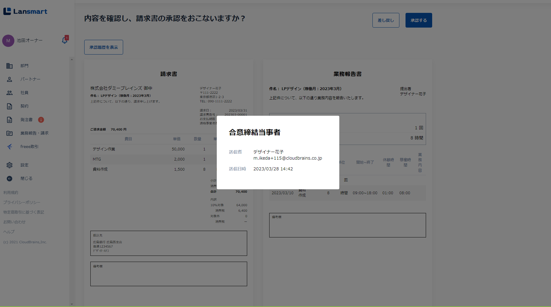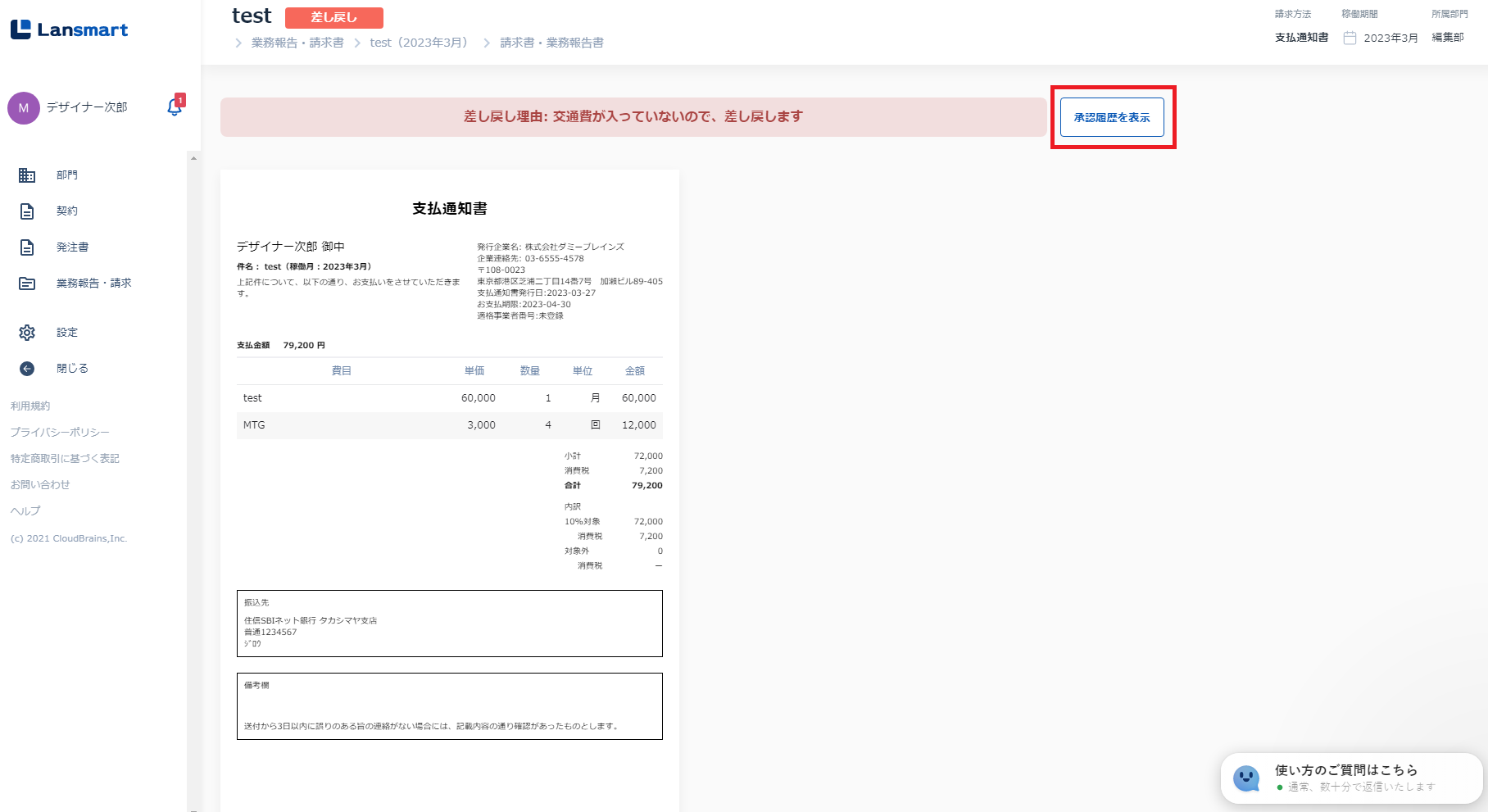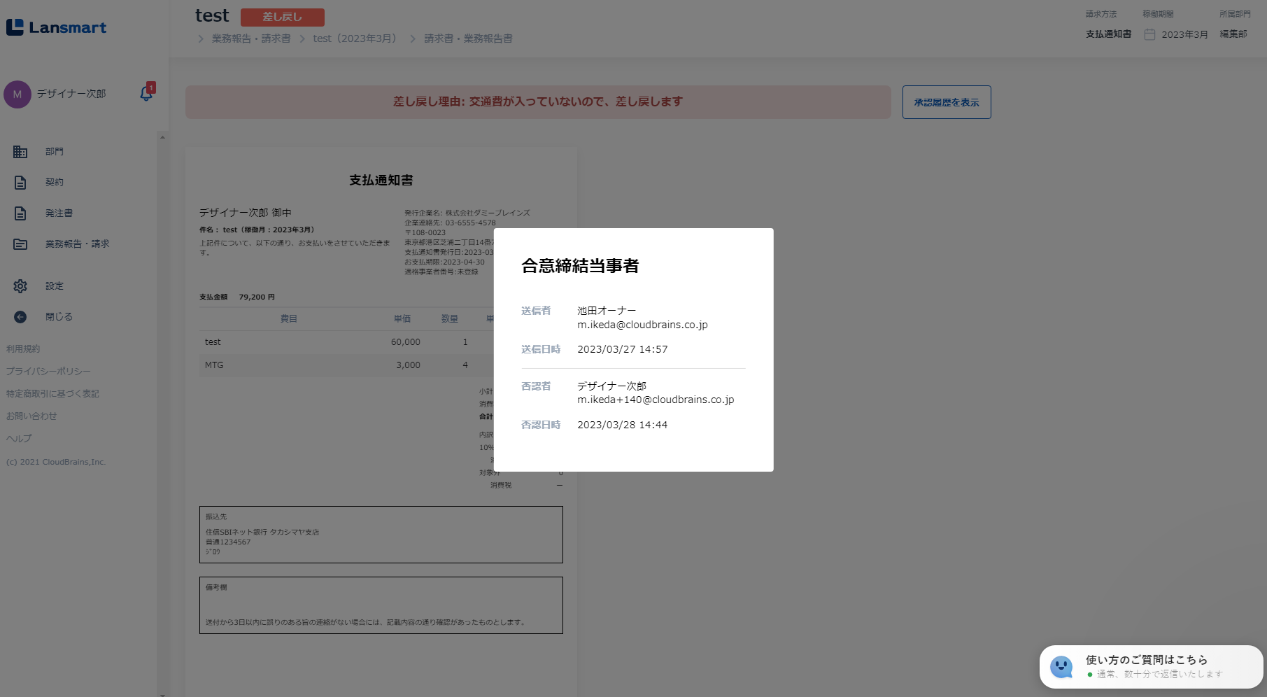 ※本リリース後(3/27 15:00以降)に承認された請求書の業務報告書のみダウンロードすることができます。リリース前に承認された請求書の業務報告書はダウンロードできませんので、ご了承くださいませ。