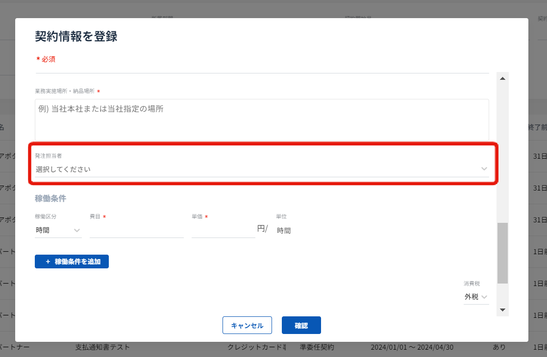 発注担当者は、Lansmartにご登録の社員から選択できます。