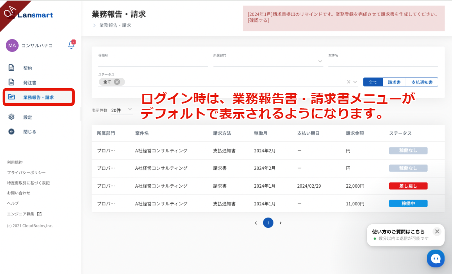 先日お問合せチャットよりご案内いたしましたが、Lansmartの契約と請求体験をさらにシンプル且つ便利におこなっていただくことを目的とし、変更を行いました。