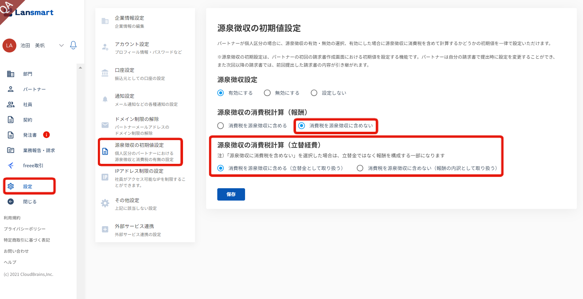 企業様側の源泉徴収の初期値設定にも選択肢が追加されていますので、ご確認くださいませ。