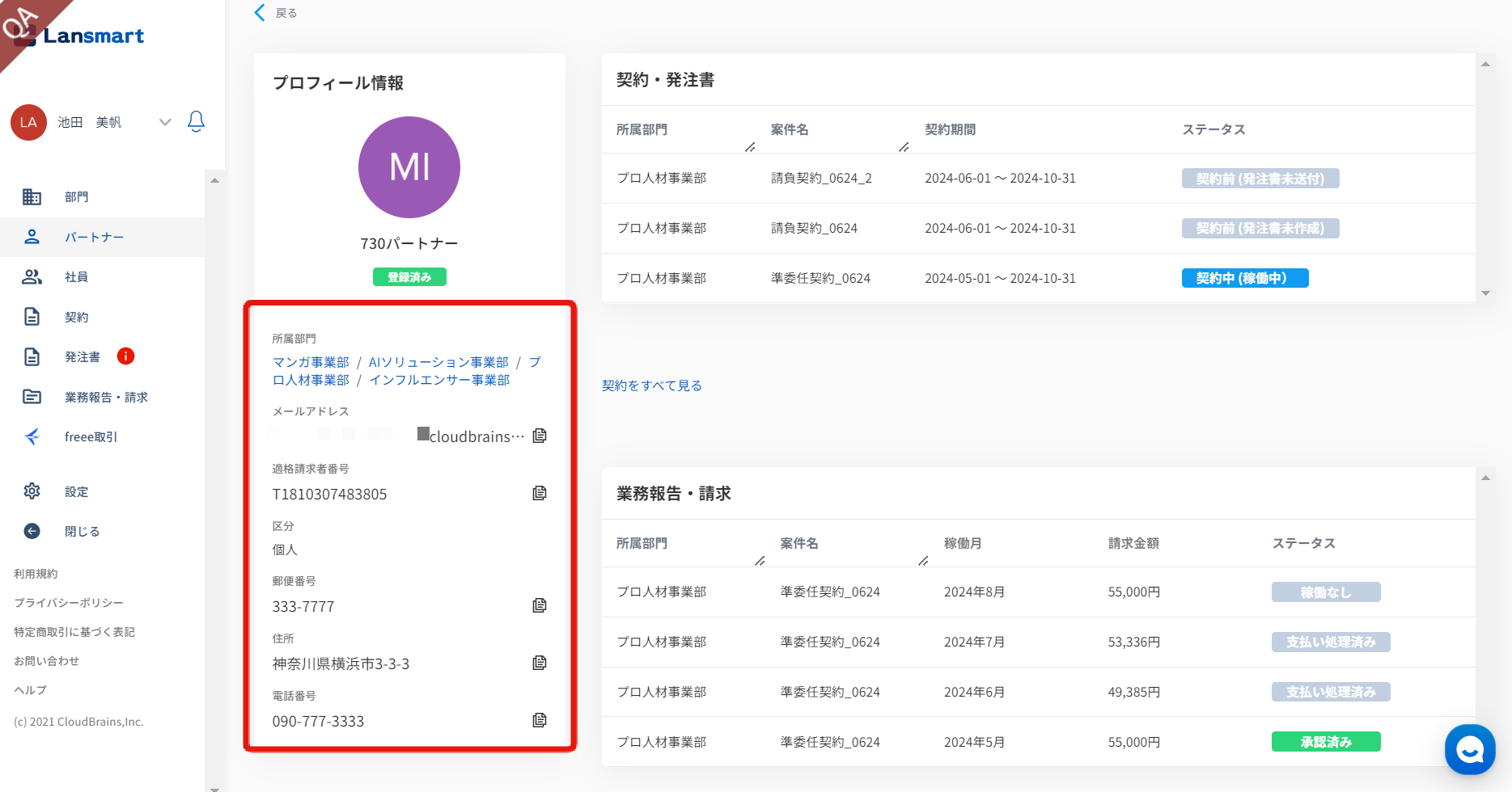 個人法人区分、郵便番号、住所、電話番号も表示されるようになりました。