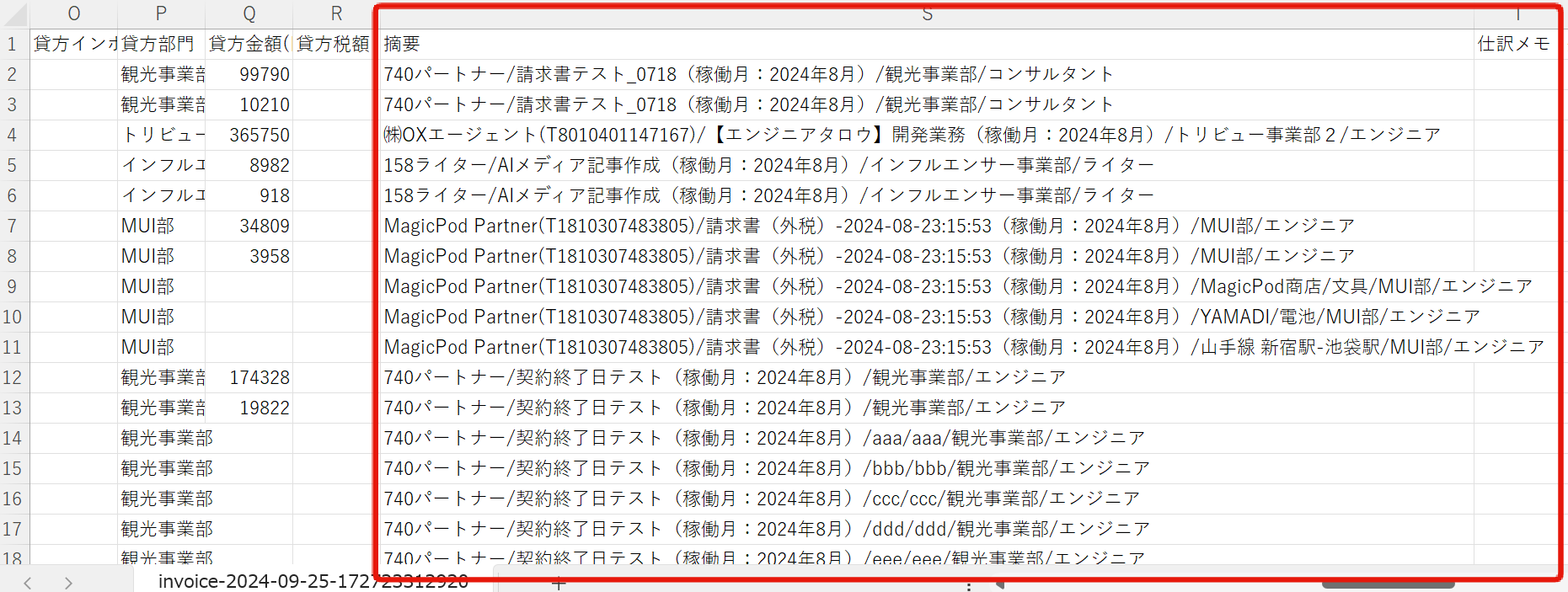 摘要の列に、「パートナー名」「案件名」「稼働月」に加えて、「部門名」「職種」も表示されるようになりました
