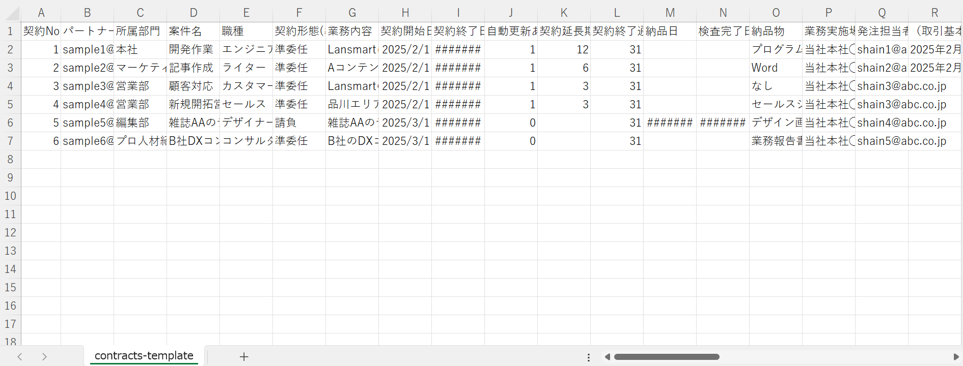(CSV1列目の契約Noの行がどんなエラーが発生しているかを確認できます) CSVデータ全件の不備ではなく一部に不備があった場合も、1件も作成・送付はされません。データを修正後、再度CSVの取り込みをお願いいたします。