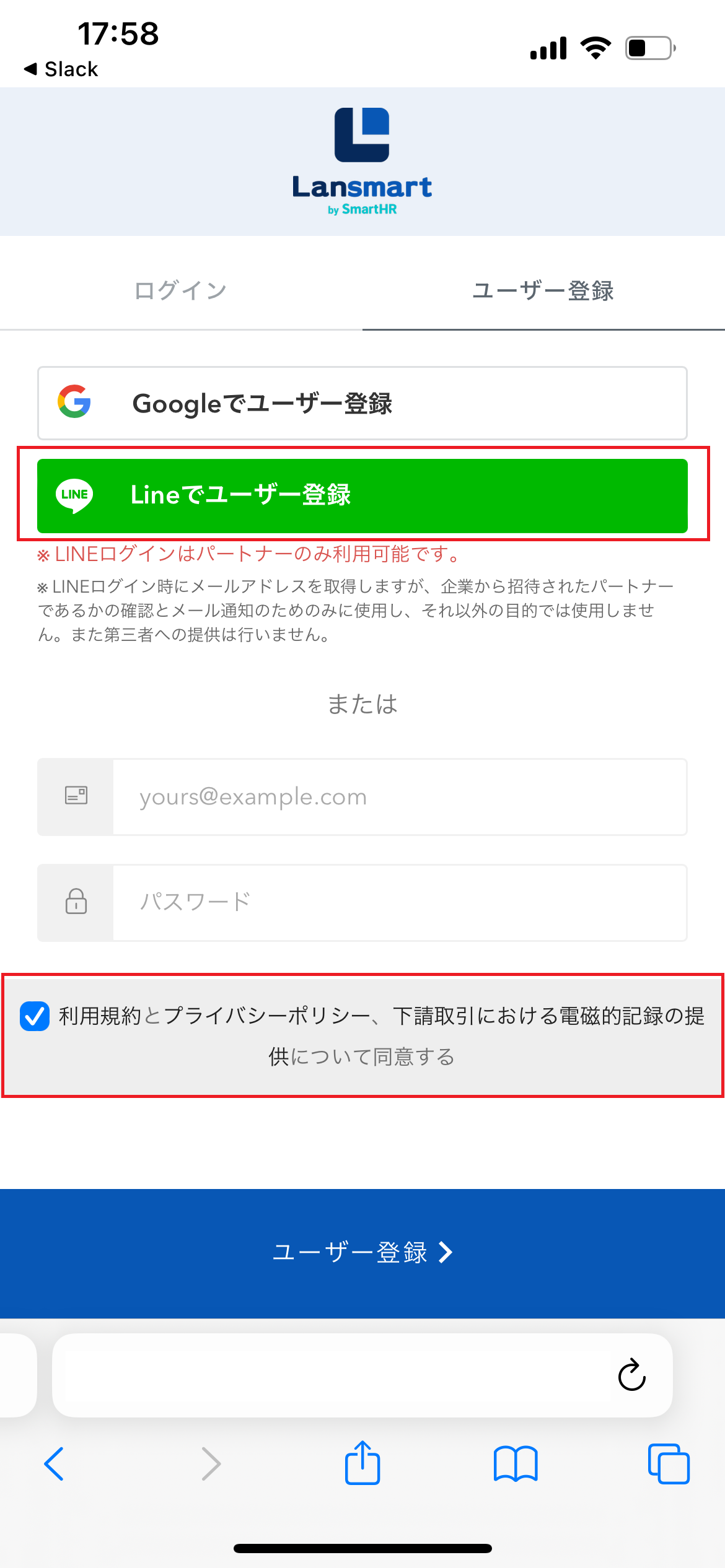 (※ LINEログインはパートナー様のみ利用可能です。企業様は利用することができません)