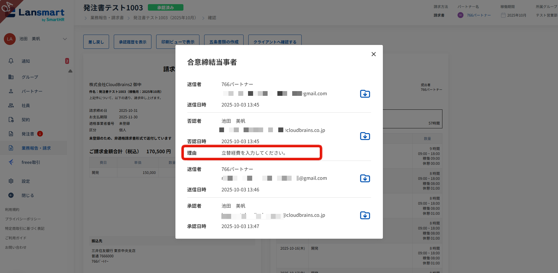請求書の差し戻し