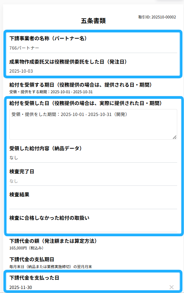 受領した給付内容(納品データ)