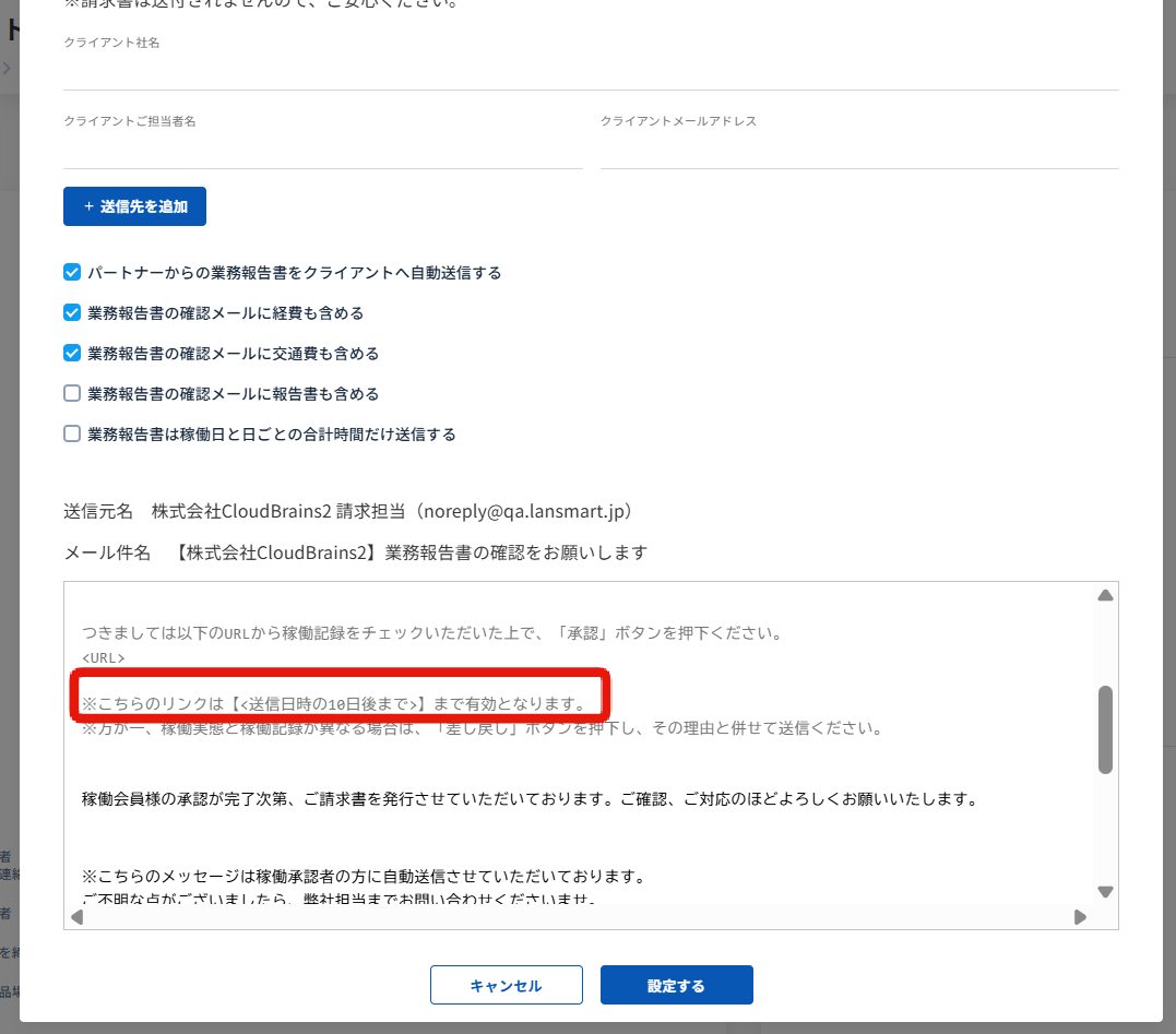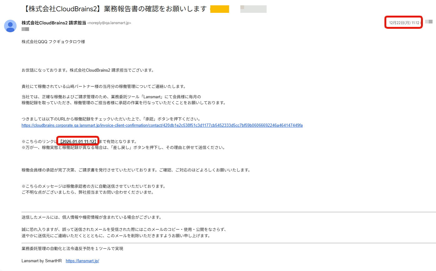 業務報告書クライアント確認メールの承認と差し戻し