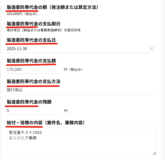 法人パートナーの支払通知書作成画面