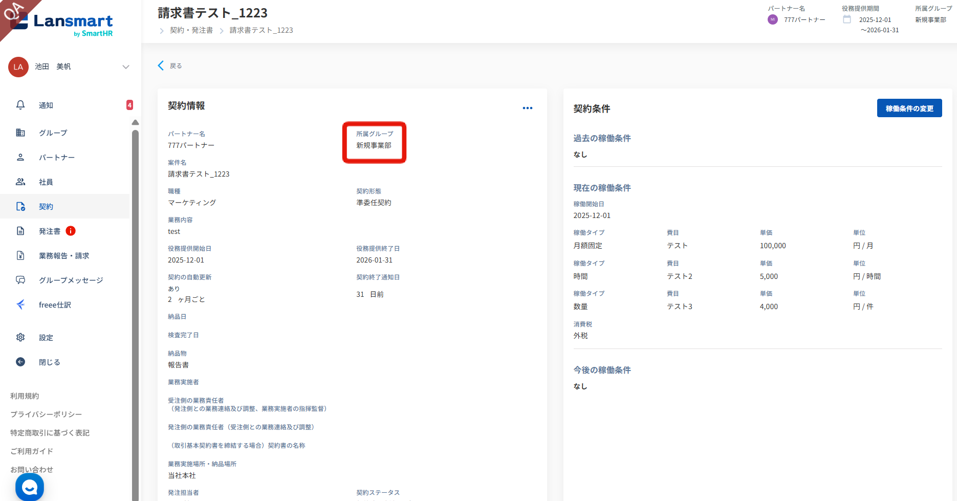 従来のグループ異動機能では、既存の契約を含むすべての契約の所属グループが変更されていましたが、特定の契約を指定してグループを異動できるようになりました。