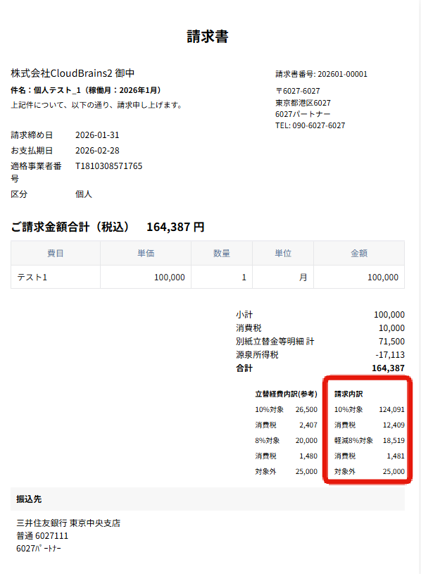請求内訳(10%対象)
