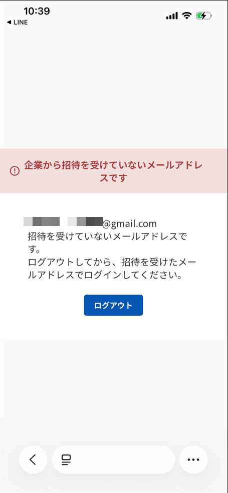 メールアドレスを変更されたい場合は、企業様へご依頼のうえ、招待されたメールアドレスのアカウントを削除し、 LINEに登録されているメールアドレスで再度招待を受けてください。