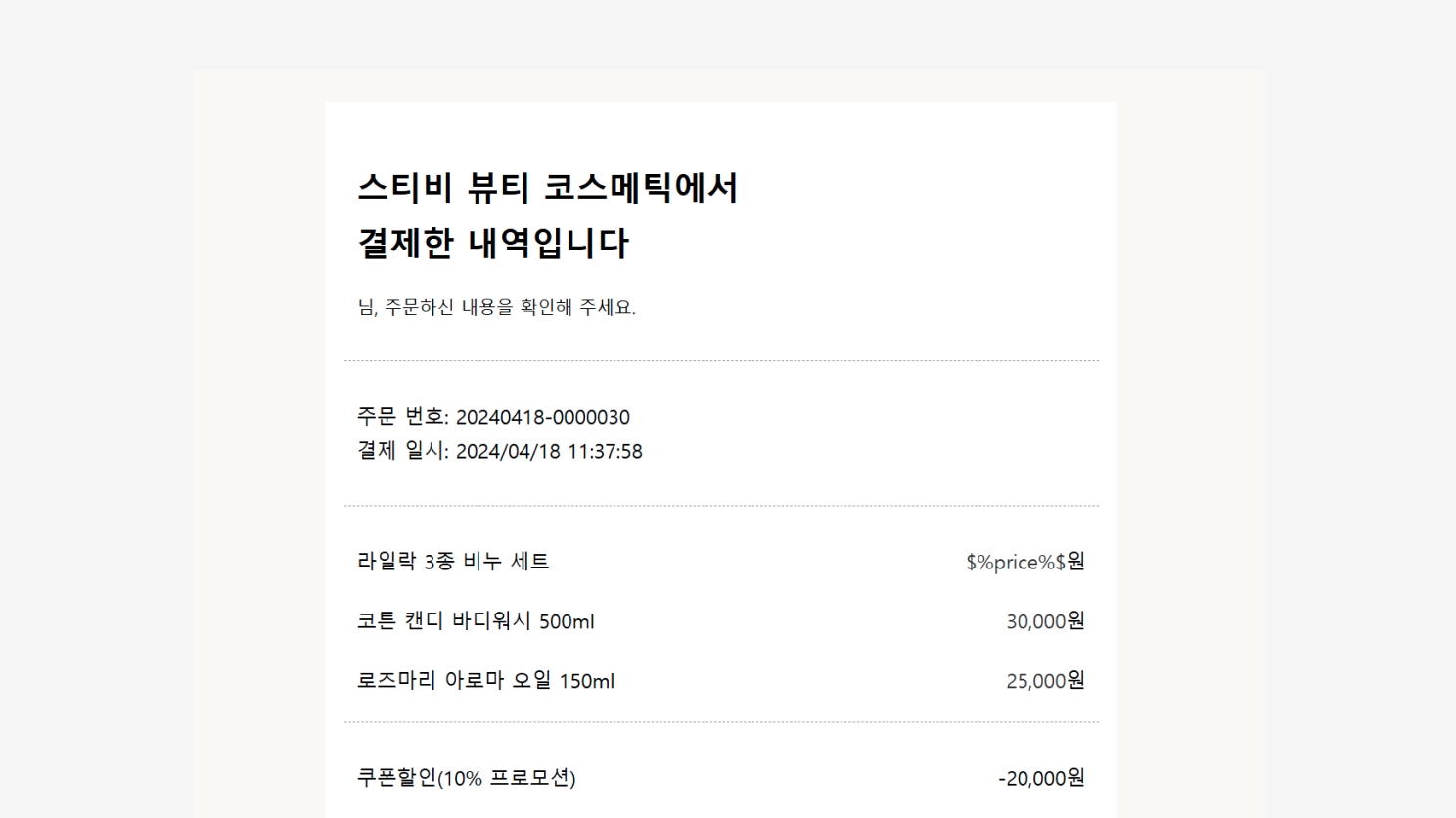 내 서비스나 홈페이지에서 결제를 진행한 고객에게 결제 관련 안내 이메일을 자동으로 보낼 수 있습니다.