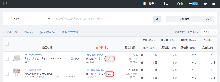 タイプ:新品・・・一般仕入、委託仕入ケースでは優先して表示