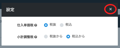 税込:仕入単価を税抜金額で入力する場合