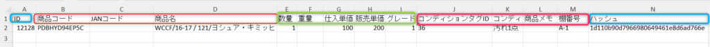 仕入商品名(任意):商品名