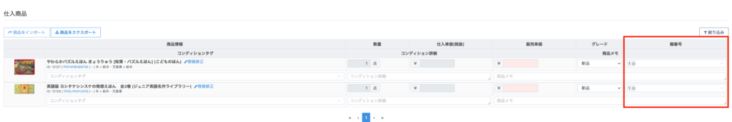 仕入商品における各商品登録の表示について